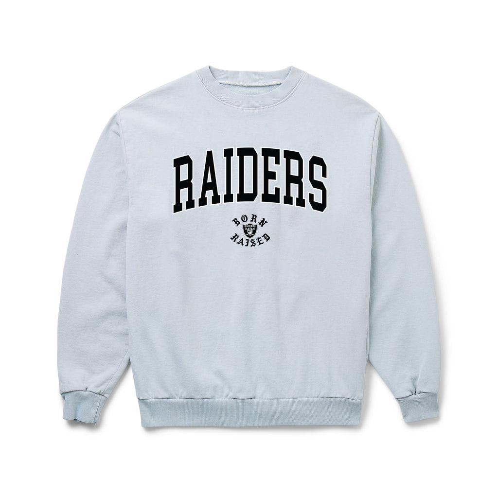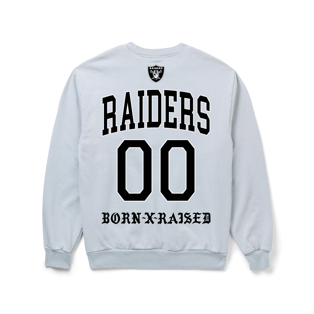 BORN X RAISED + RAIDERS COLLEGIATE CREWNECK: SILVER