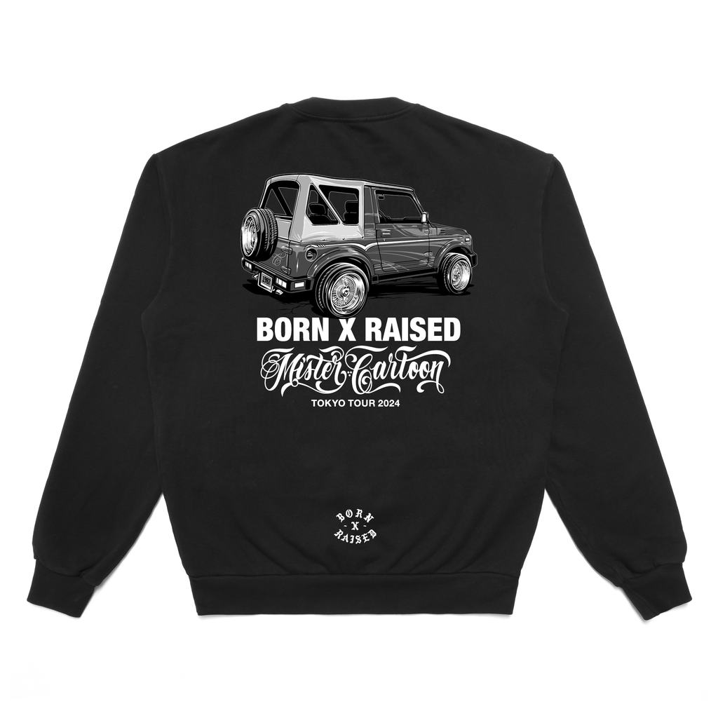 BORN X RAISED + MR CARTOON SAMURAI CREWNECK: BLACK