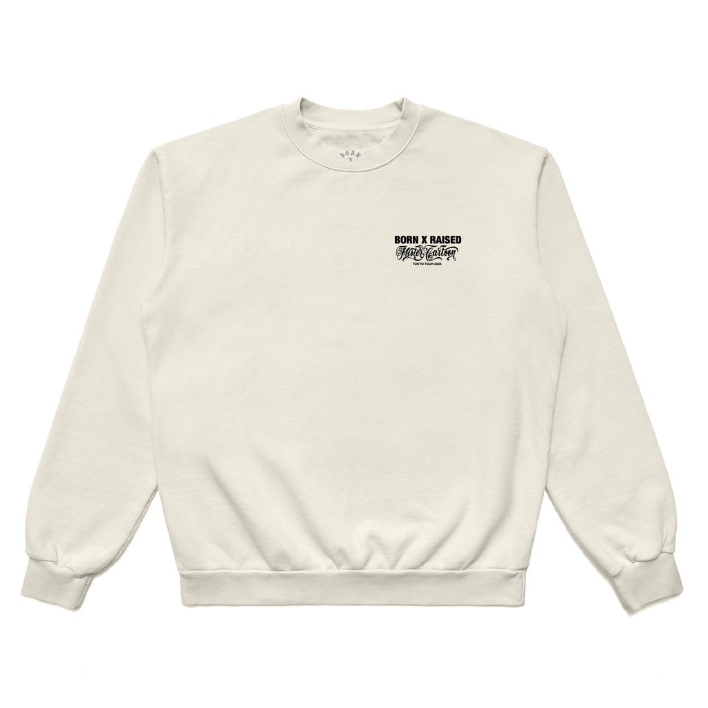 BORN X RAISED + MR CARTOON SAMURAI CREWNECK: CREAM