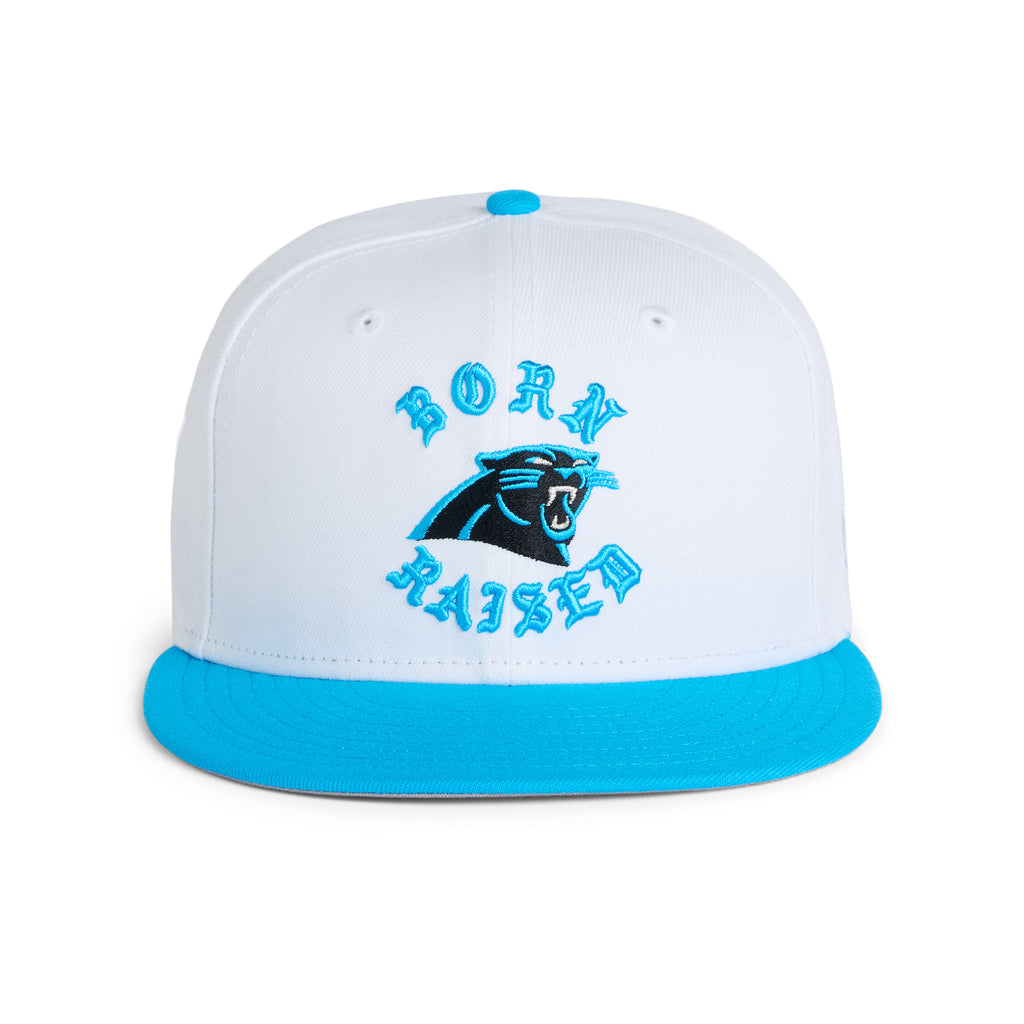 BORN X RAISED + PANTHERS ROCKER SNAPBACK: WHITE / BLUE