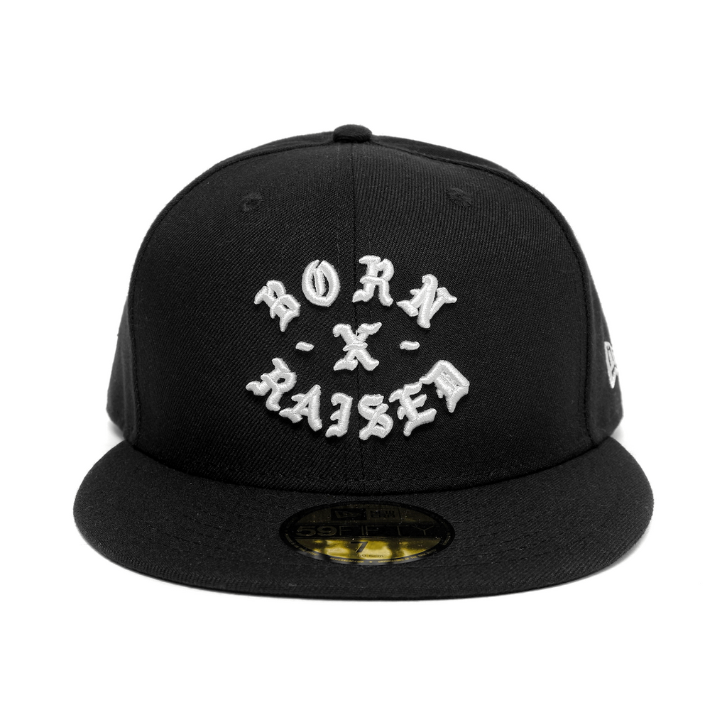 BORN X RAISED + RAMS NEW ERA INSIGNIA FITTED HAT: BLACK