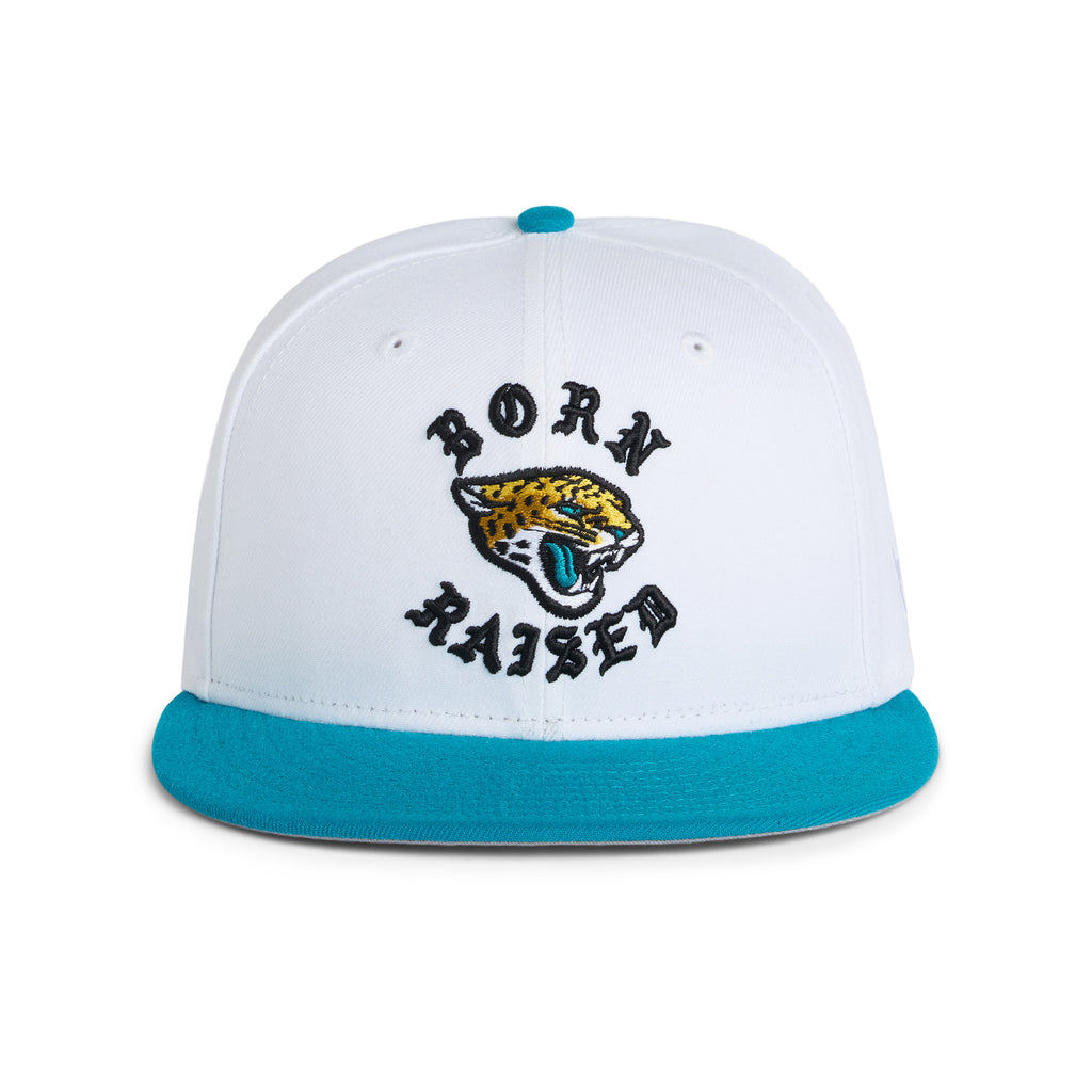 BORN X RAISED + JAGUARS ROCKER SNAPBACK: WHITE / TEAL