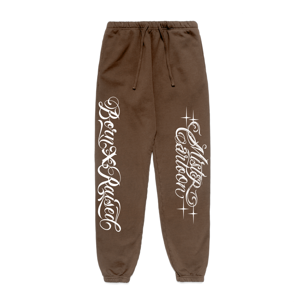 BORN X RAISED + MR CARTOON SCRIPT SWEATPANTS: WALNUT