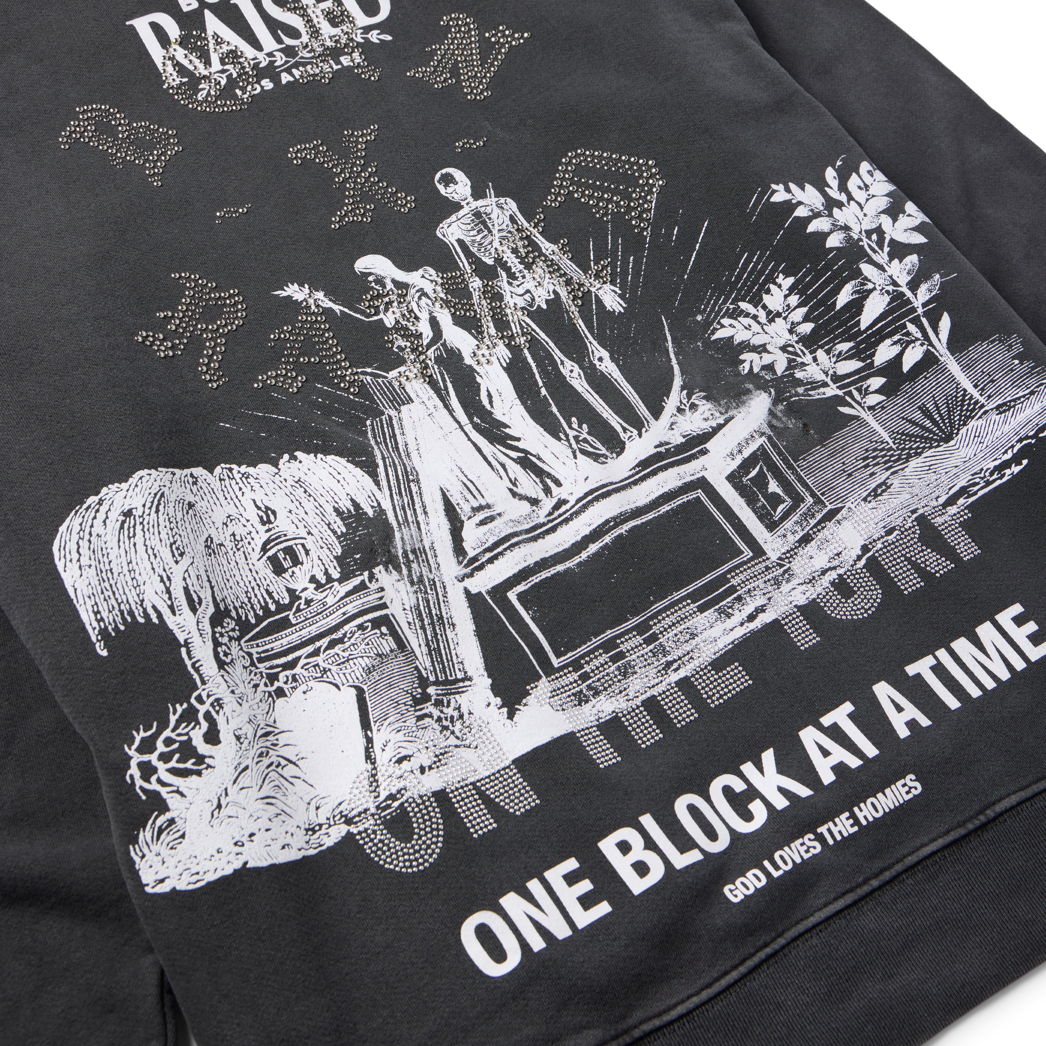 100% COTTON HOODIE. SCREENPRINTED ARTWORK ON FRONT LEFT CHEST AND BACK. THIS GARMENT CONTAINS STUDDED EMBELLISHMENTS THAT MAY FALL OFF OVER TIME.