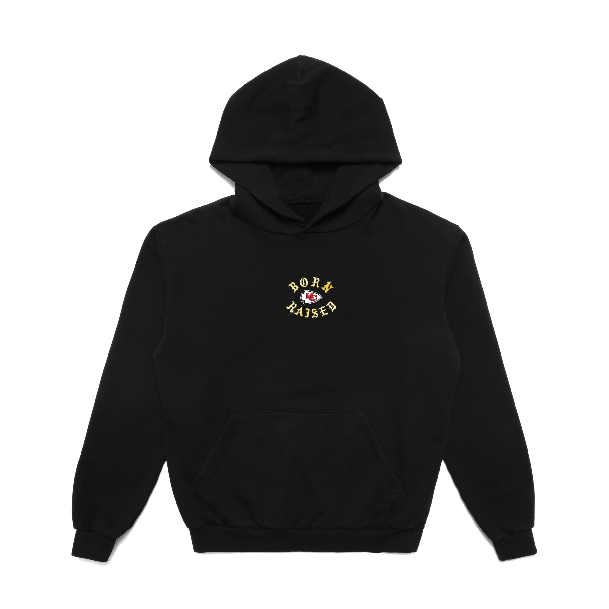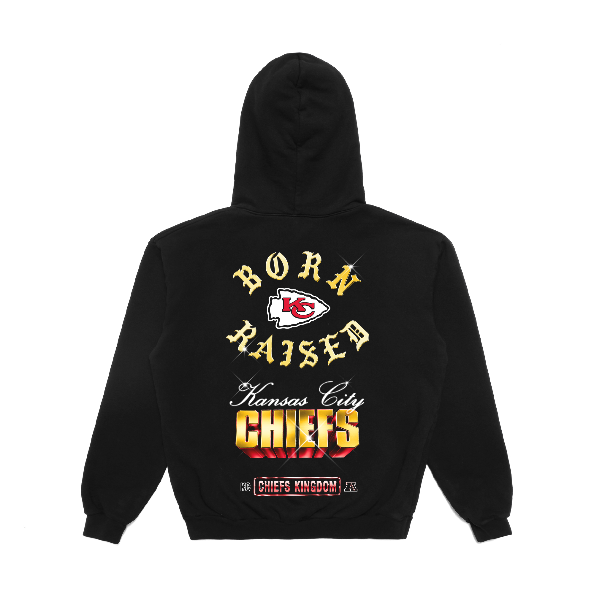 OFFICIAL COLLABORATION WITH THE NFL AND THE KANSAS CITY CHIEFS. 100% COTTON HOODED SWEATSHIRT. SCREENPRINTED ARTWORK ON CENTER CHEST AND BACK.