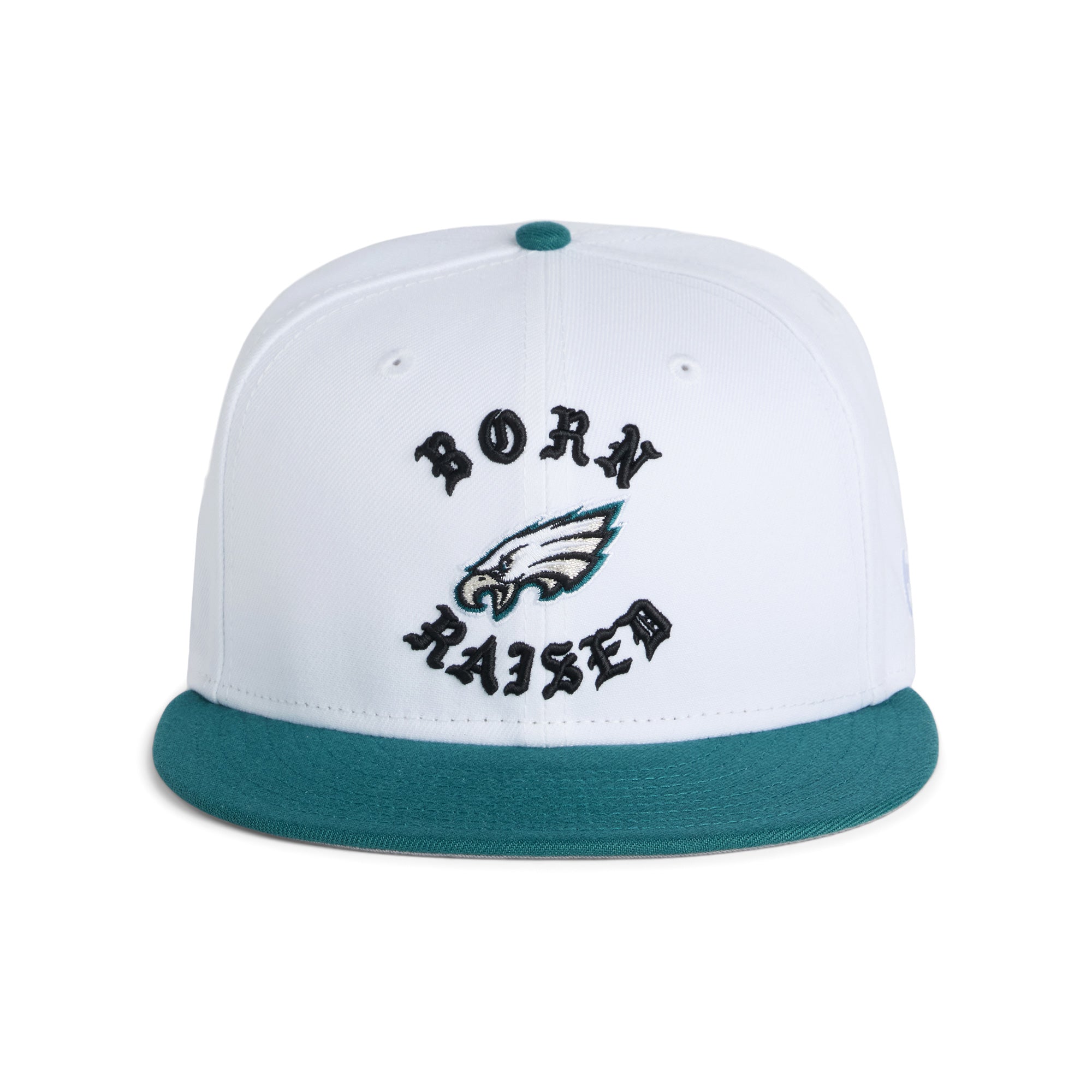 BORN X RAISED + EAGLES ROCKER SNAPBACK: WHITE / MIDNIGHT GREEN