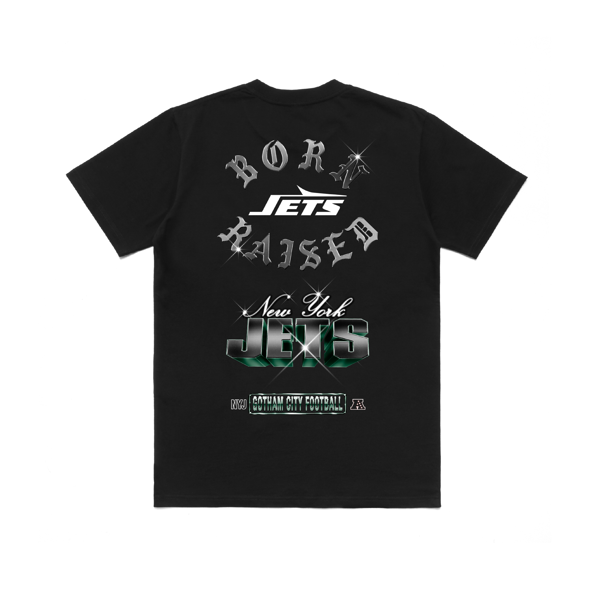OFFICIAL COLLABORATION WITH THE NFL AND THE NEW YORK JETS. 100% COTTON TEE. SCREENPRINTED ARTWORK ON CENTER CHEST AND BACK.
