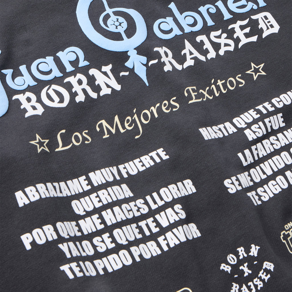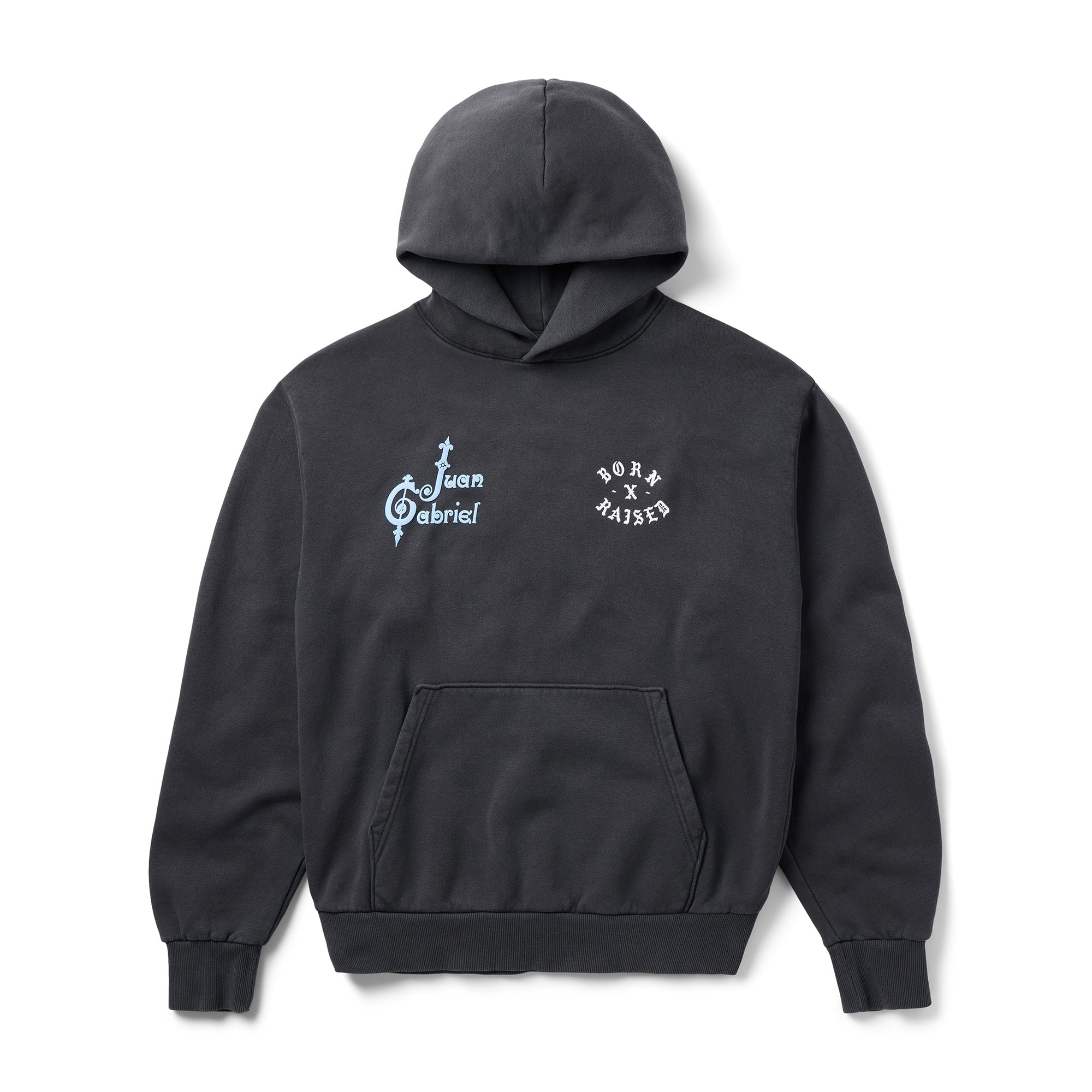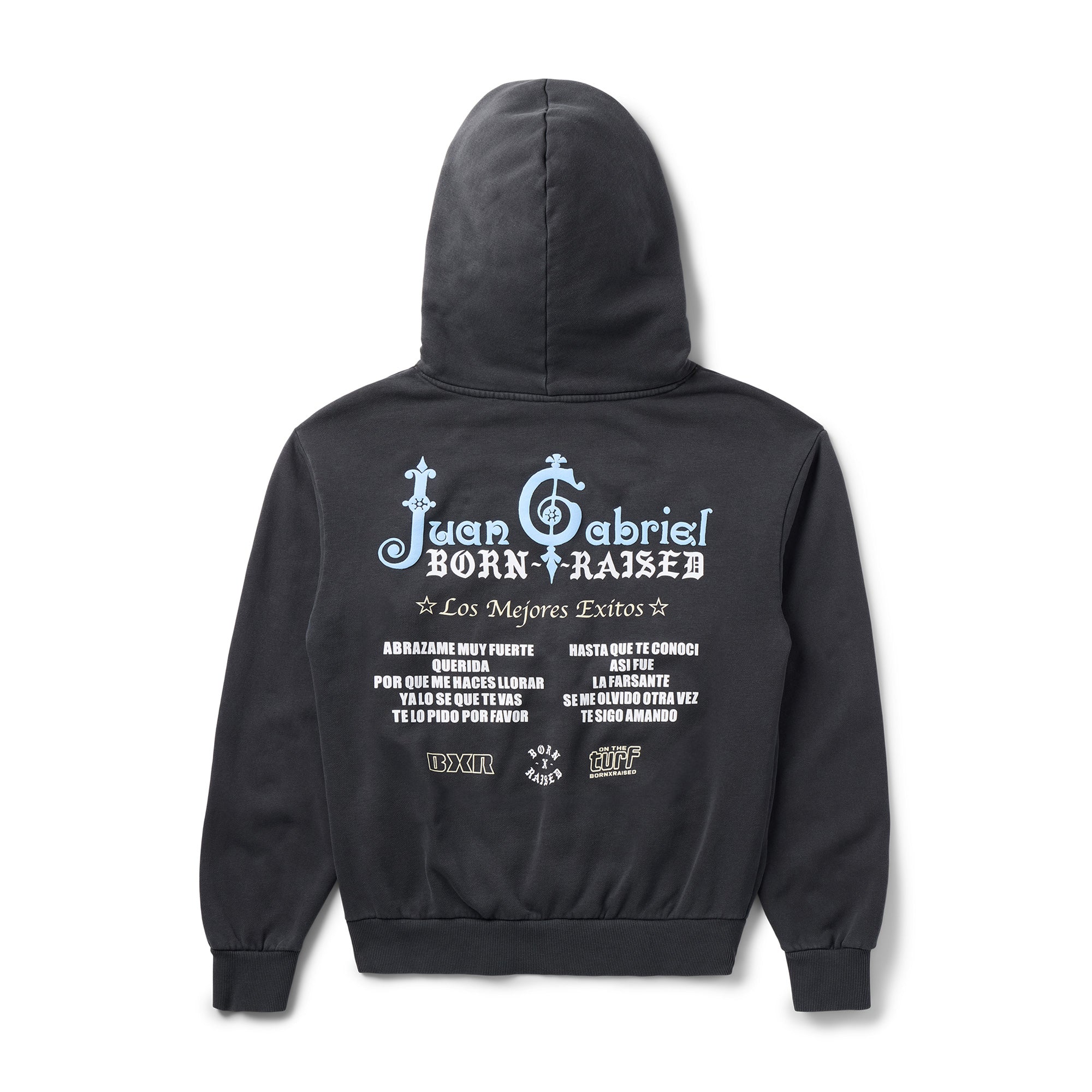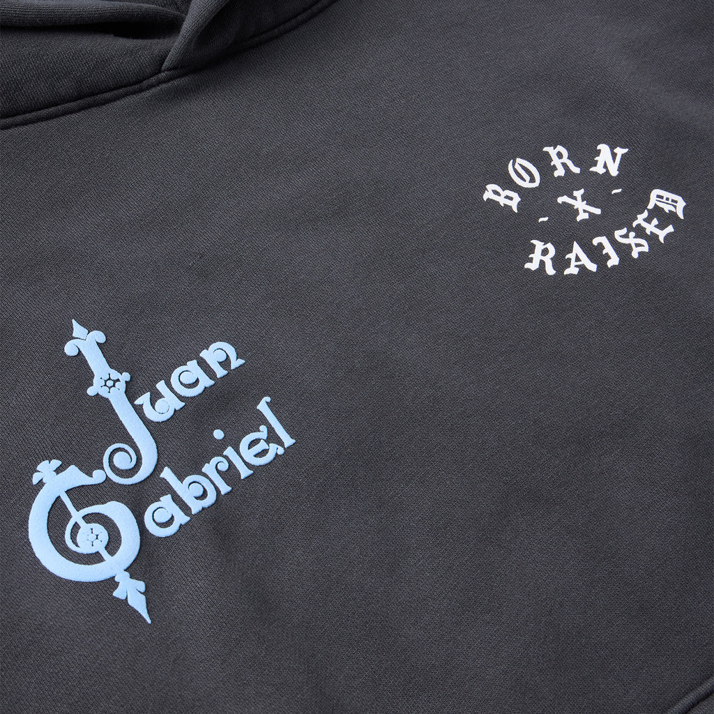 OFFICIAL COLLABORATION WITH THE ESTATE OF JUAN GABRIEL. 100% COTTON HOODED SWEATSHIRT WITH SCREENPRINTED ARTWORK ON FRONT AND BACK WITH PUFF PRINTED DETAIL.