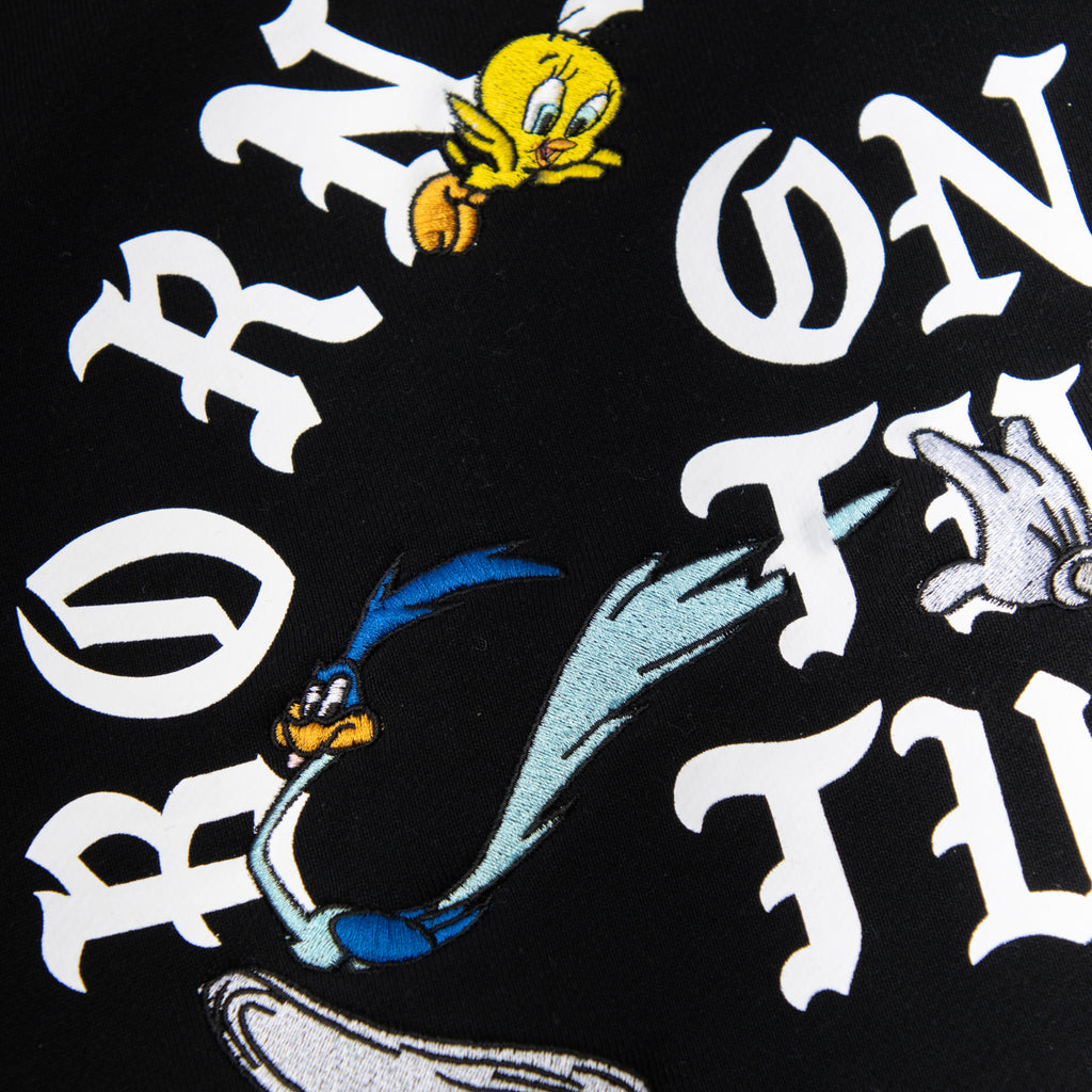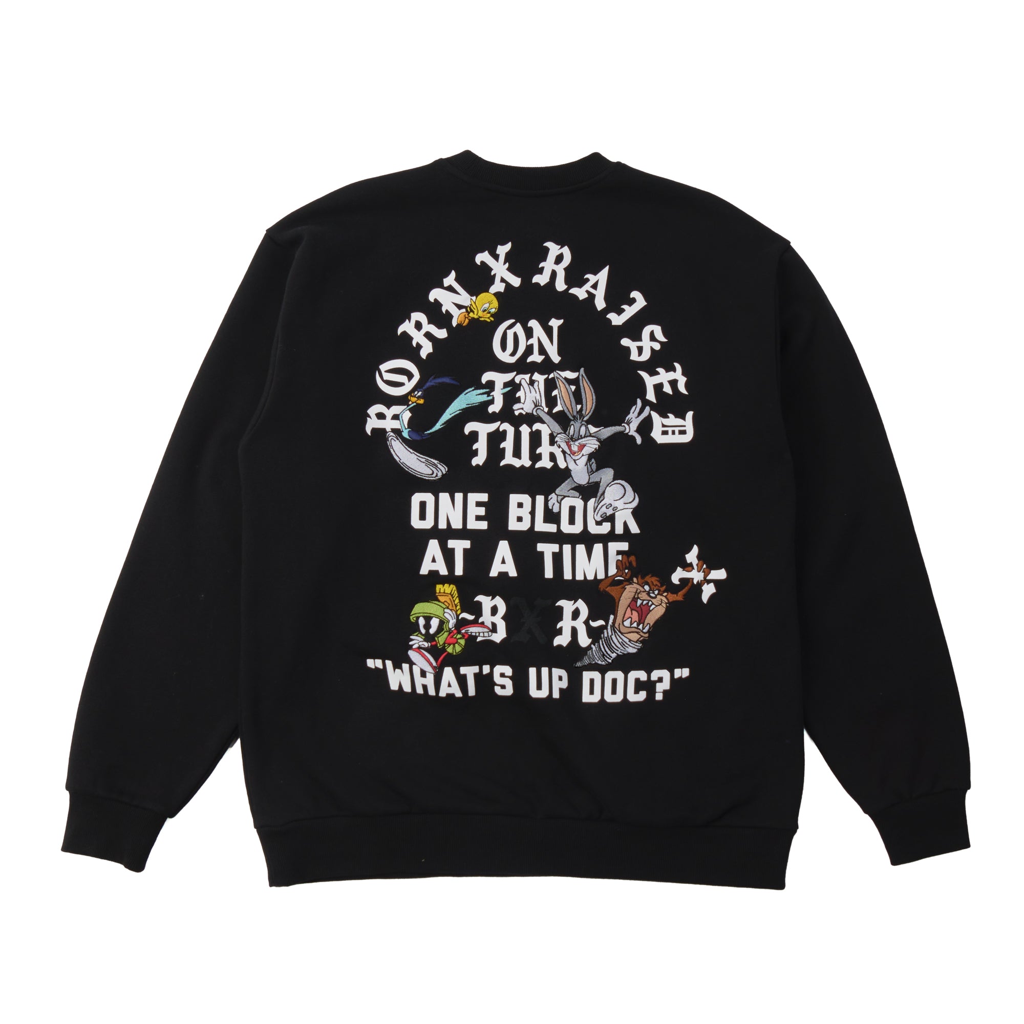 OFFICIAL COLLABORATION WITH LOONEY TUNES. 100% COTTON CREWNECK SWEATSHIRT. SCREENPRINTED ARTWORK ON LEFT CHEST. SCREENPRINTED TYPE, EMBROIDERED CHARACTERS ON BACK. LOONEY TUNES AND ALL RELATED CHARACTERS AND ELEMENTS © & ™ WBEI. (S25)