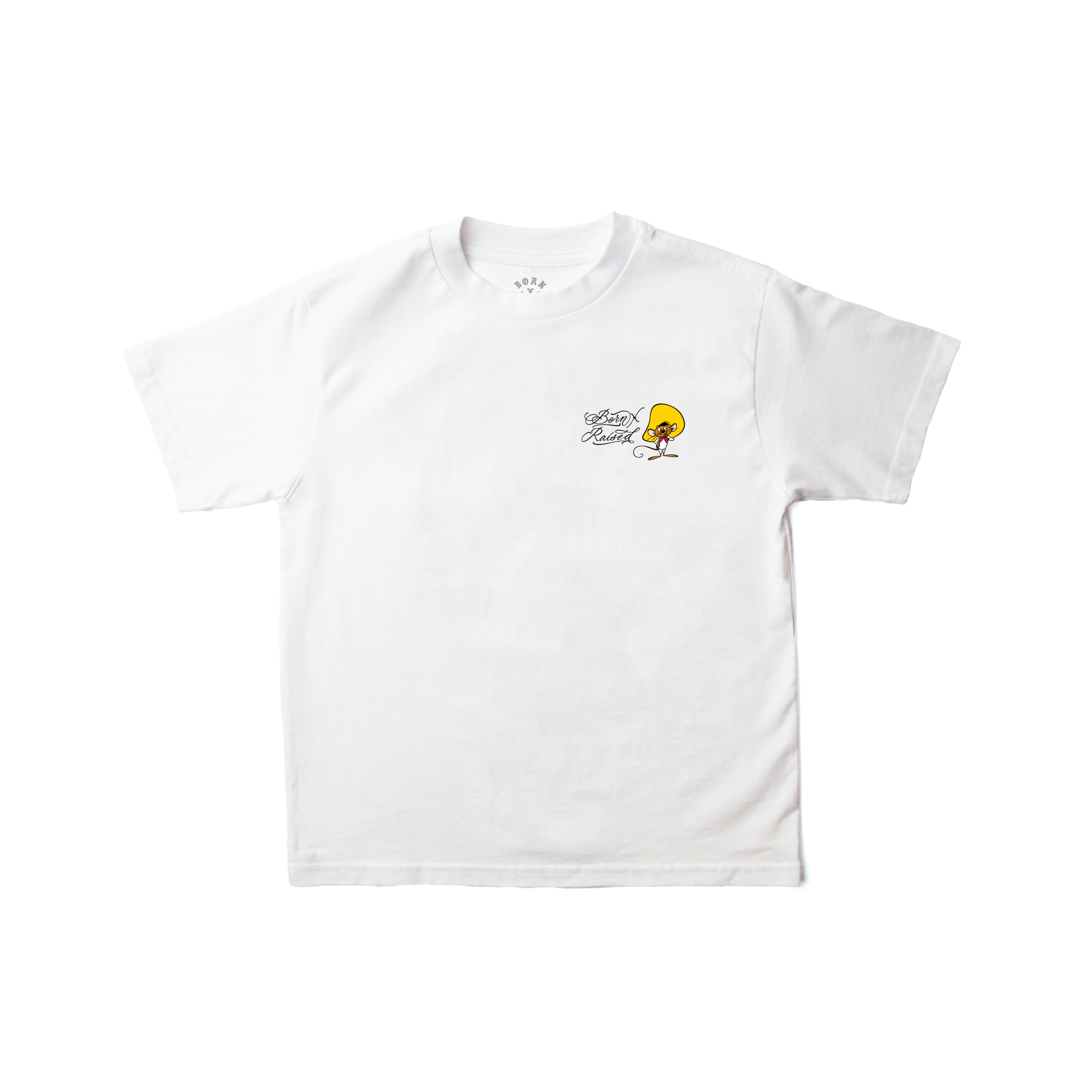 OFFICIAL COLLABORATION WITH LOONEY TUNES. 100% COTTON YOUTH TEE. SCREENPRINTED ARTWORK ON LEFT CHEST AND BACK. LOONEY TUNES AND ALL RELATED CHARACTERS AND ELEMENTS © & ™ WBEI. (S25)