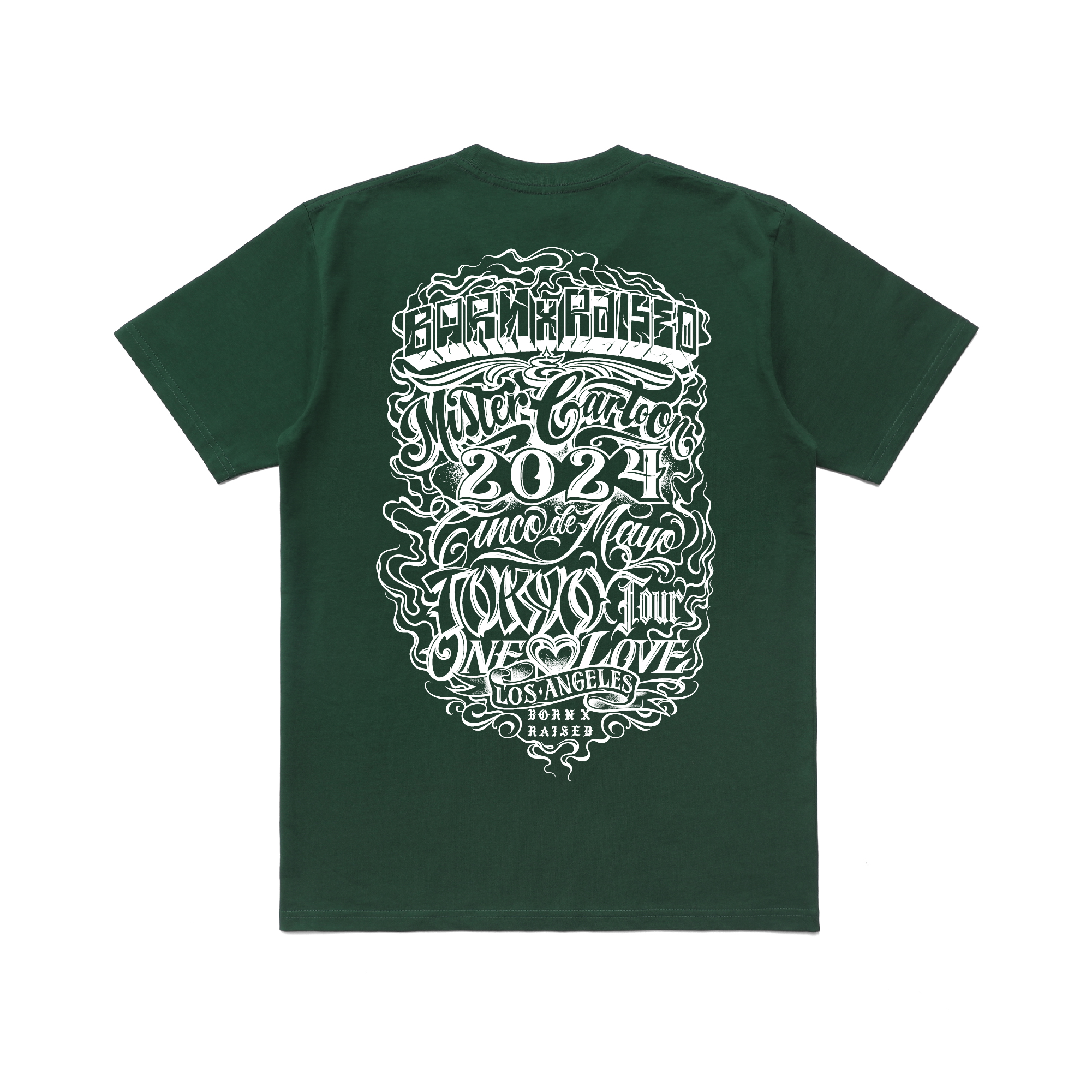 OFFICIAL COLLABORATION WITH MISTER CARTOON. 100% COTTON TEE WITH SCREENPRINTED ARTWORK ON LEFT CHEST AND BACK.