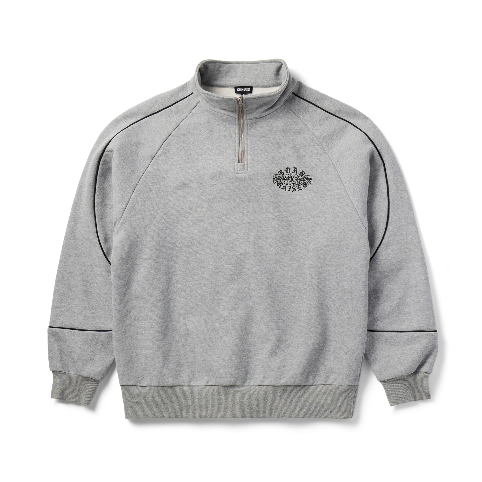 OFFICIAL COLLABORATION WITH MISTER CARTOON. 100% COTTON 480 GSM FLEECE QUARTER ZIP SWEATSHIRT. BLACK PIPING DOWN BOTH SLEEVES AND ACROSS BACK. CO-BRANDED EMBROIDERY ON LEFT CHEST.