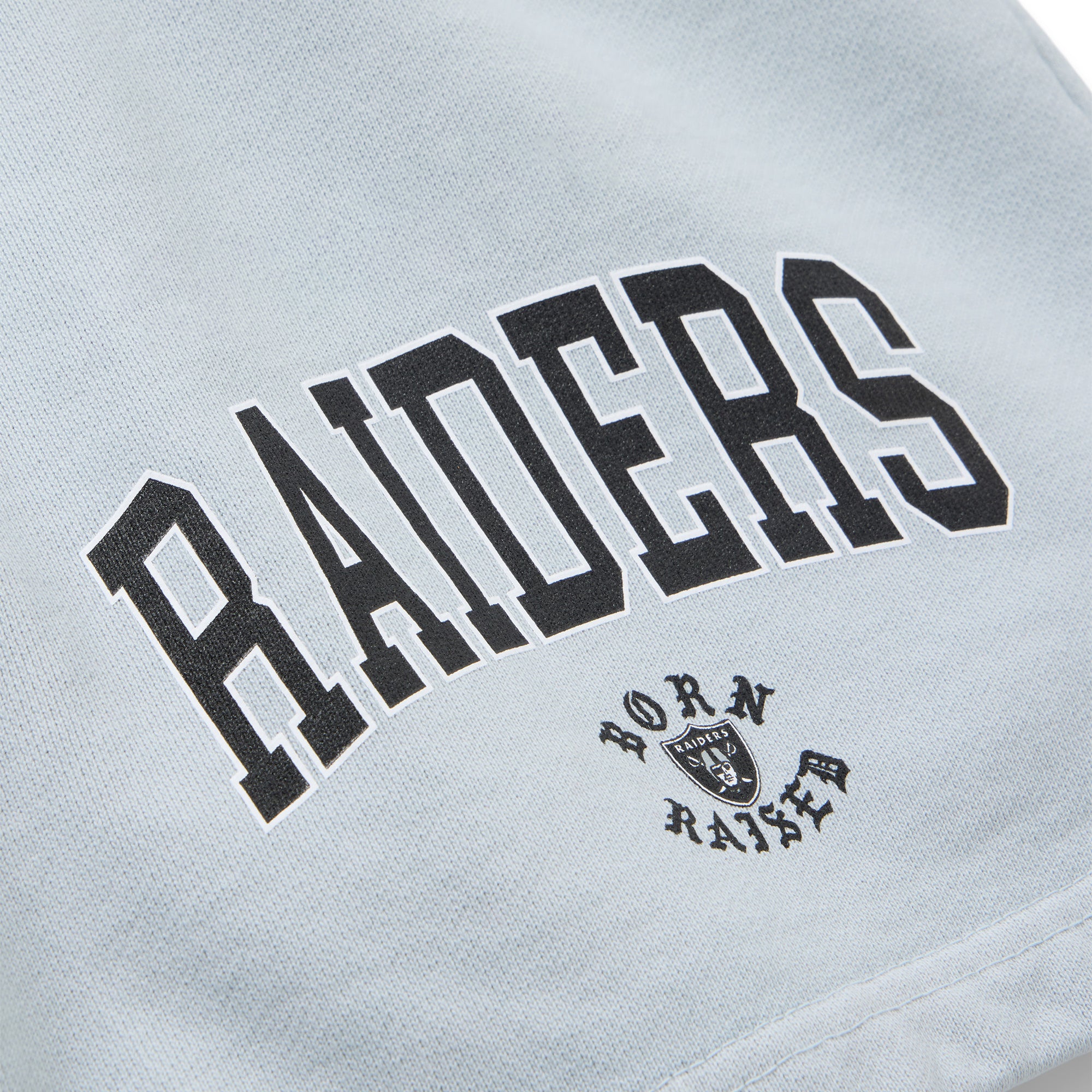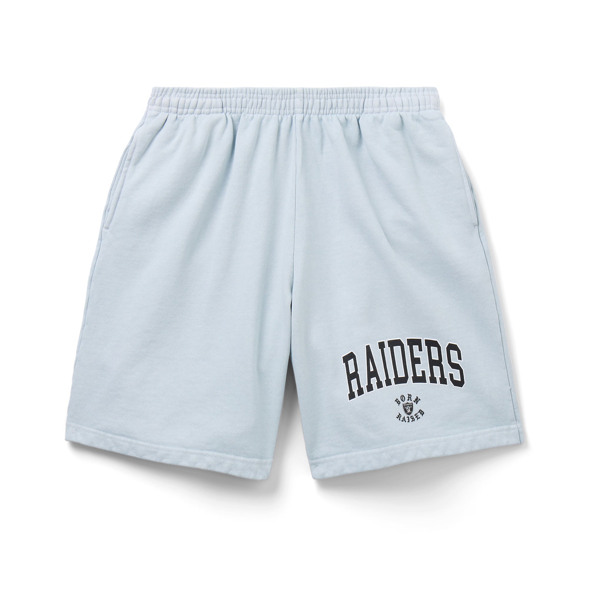OFFICIAL COLLABORATION WITH THE LAS VEGAS RAIDERS. 100% COTTON SWEATSHORTS WITH SCREENPRINTED ARTWORK ON LEFT LEG.
