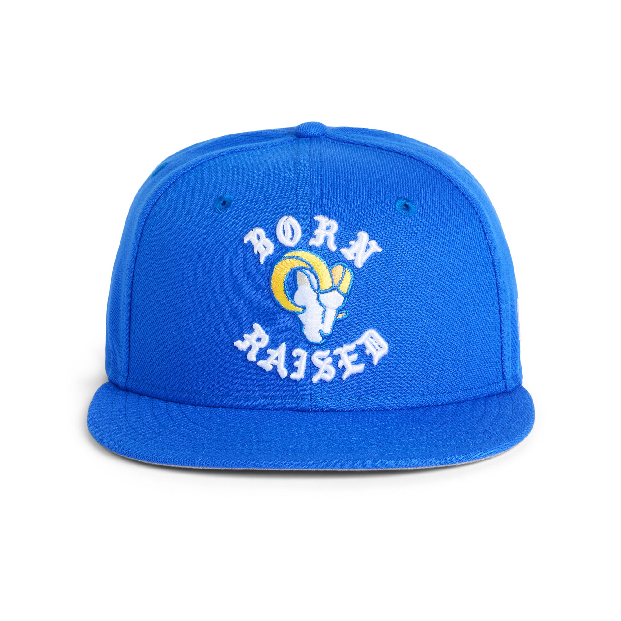 OFFICIAL COLLABORATION WITH THE NFL AND THE LOS ANGELES RAMS. NEW ERA 59FIFTY FITTED HAT. EMBROIDERED ARTWORK ON FRONT AND BACK.