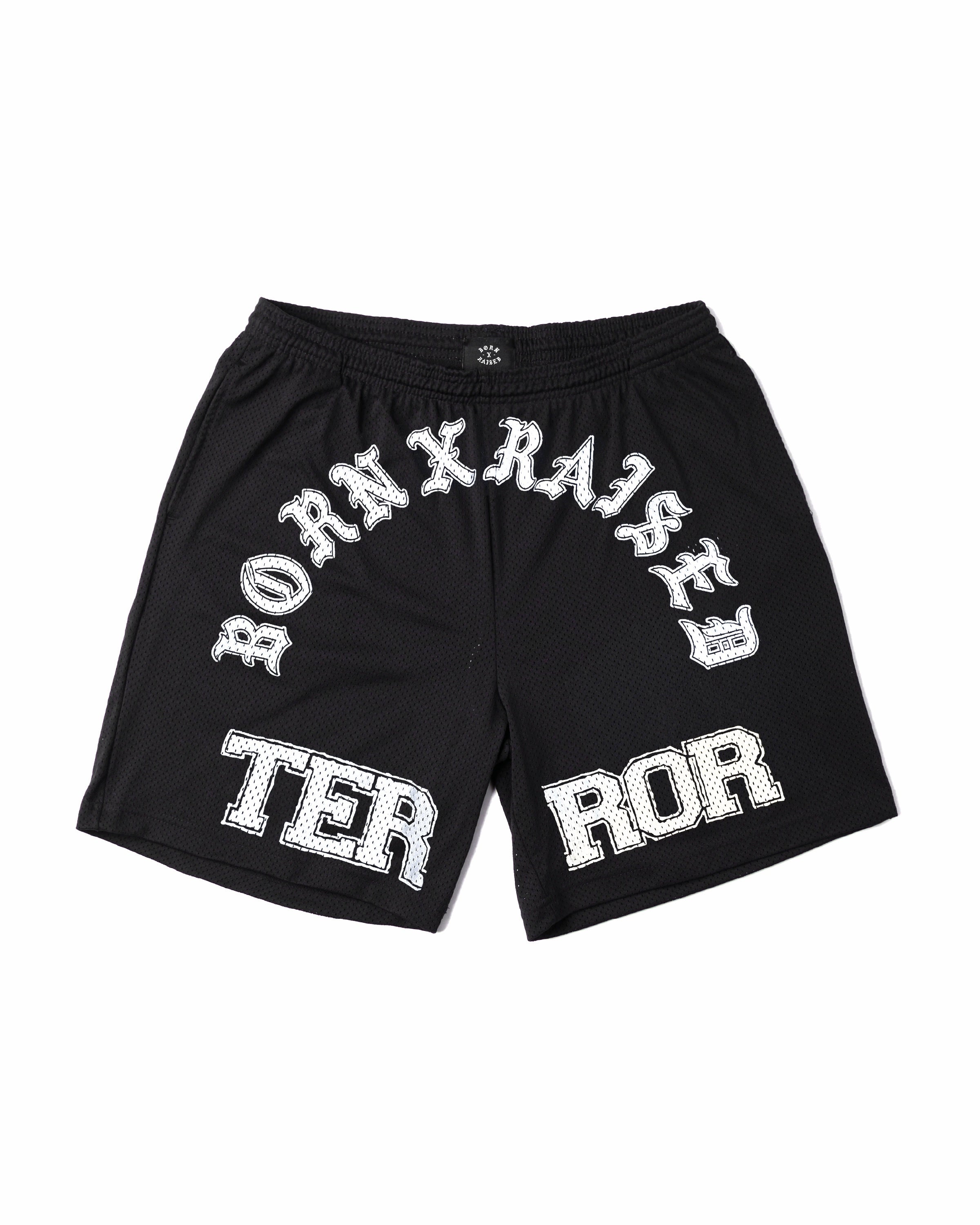 BORN X RAISED + TERROR MESH SHORTS: BLACK