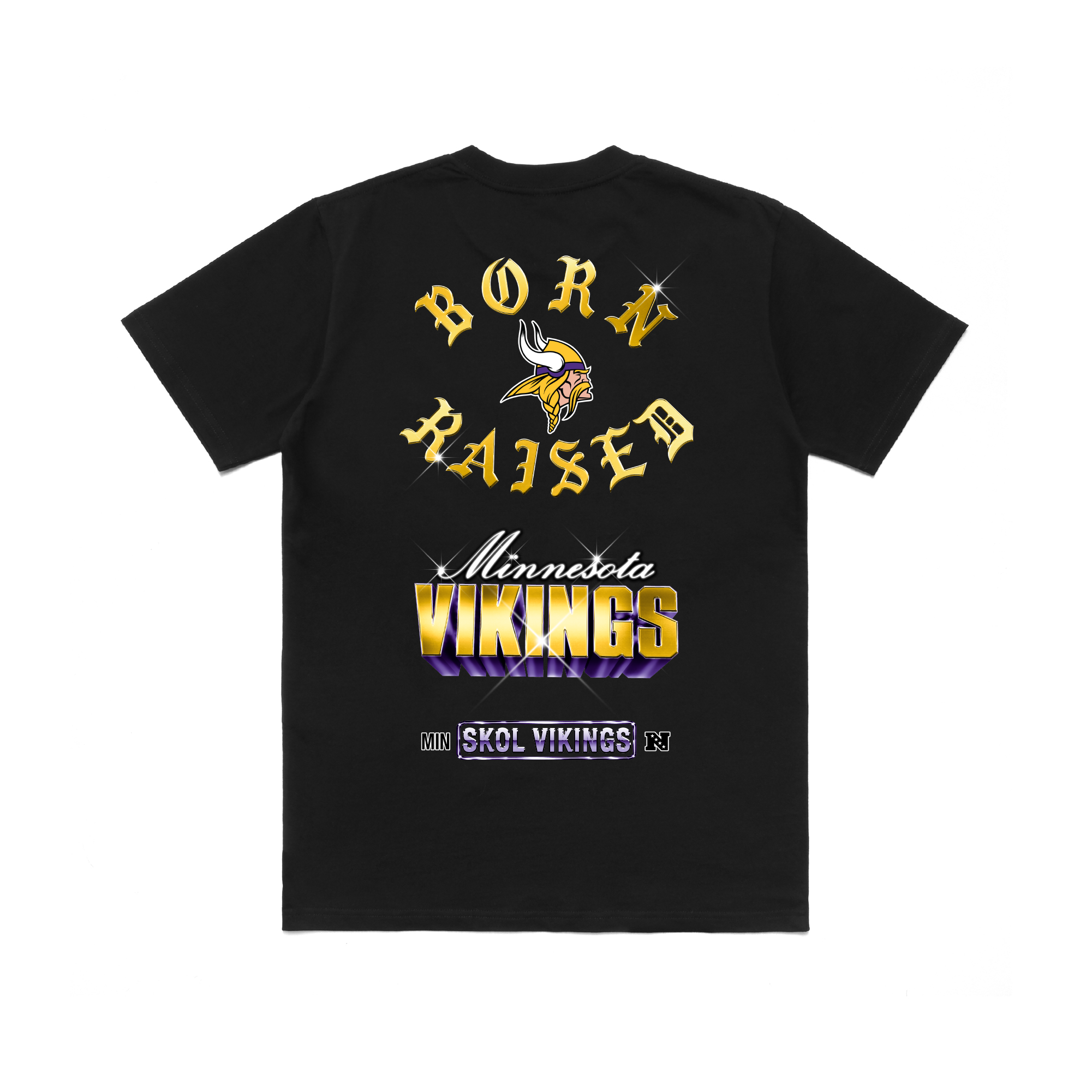 OFFICIAL COLLABORATION WITH THE NFL AND THE MINNESOTA VIKINGS. 100% COTTON TEE. SCREENPRINTED ARTWORK ON CENTER CHEST AND BACK.