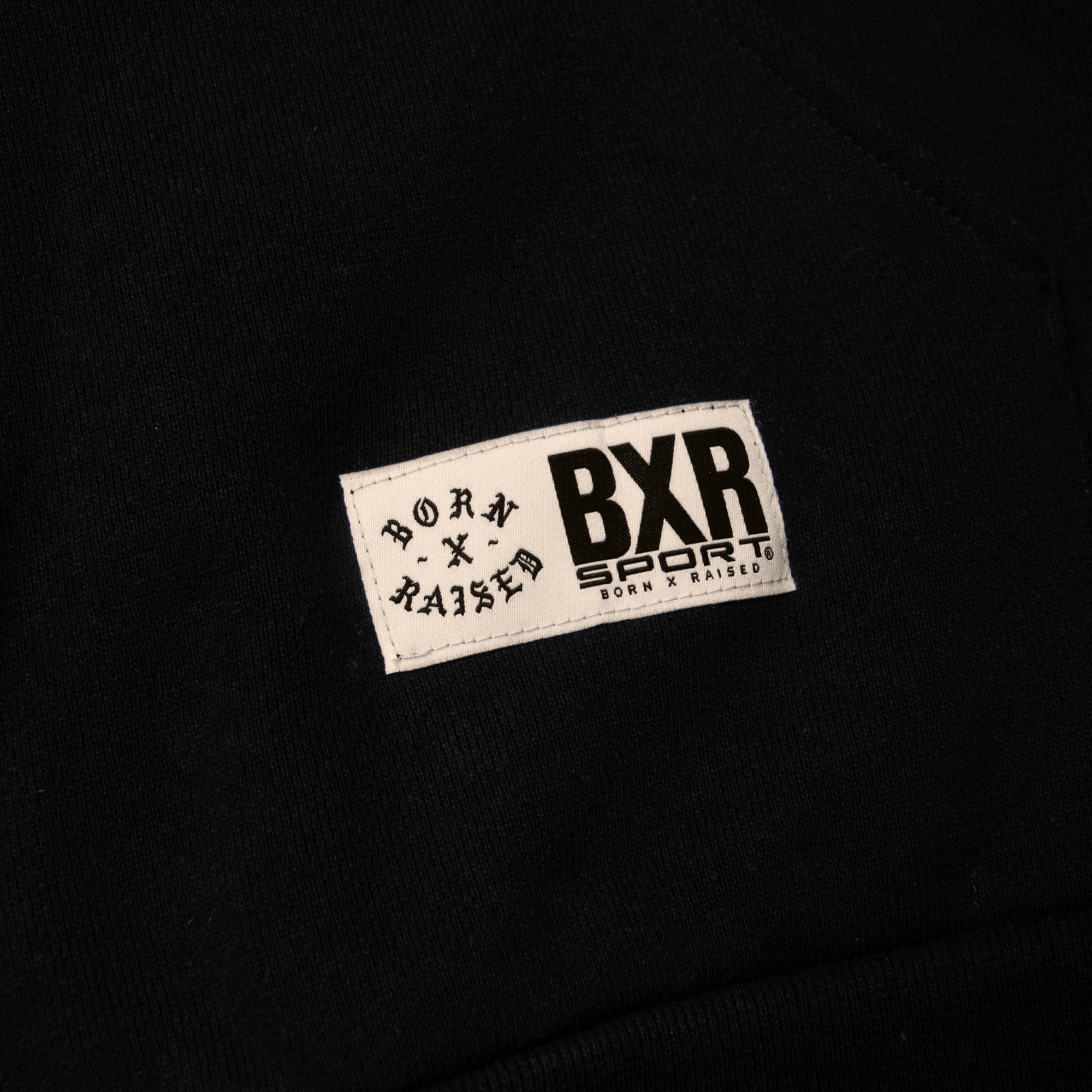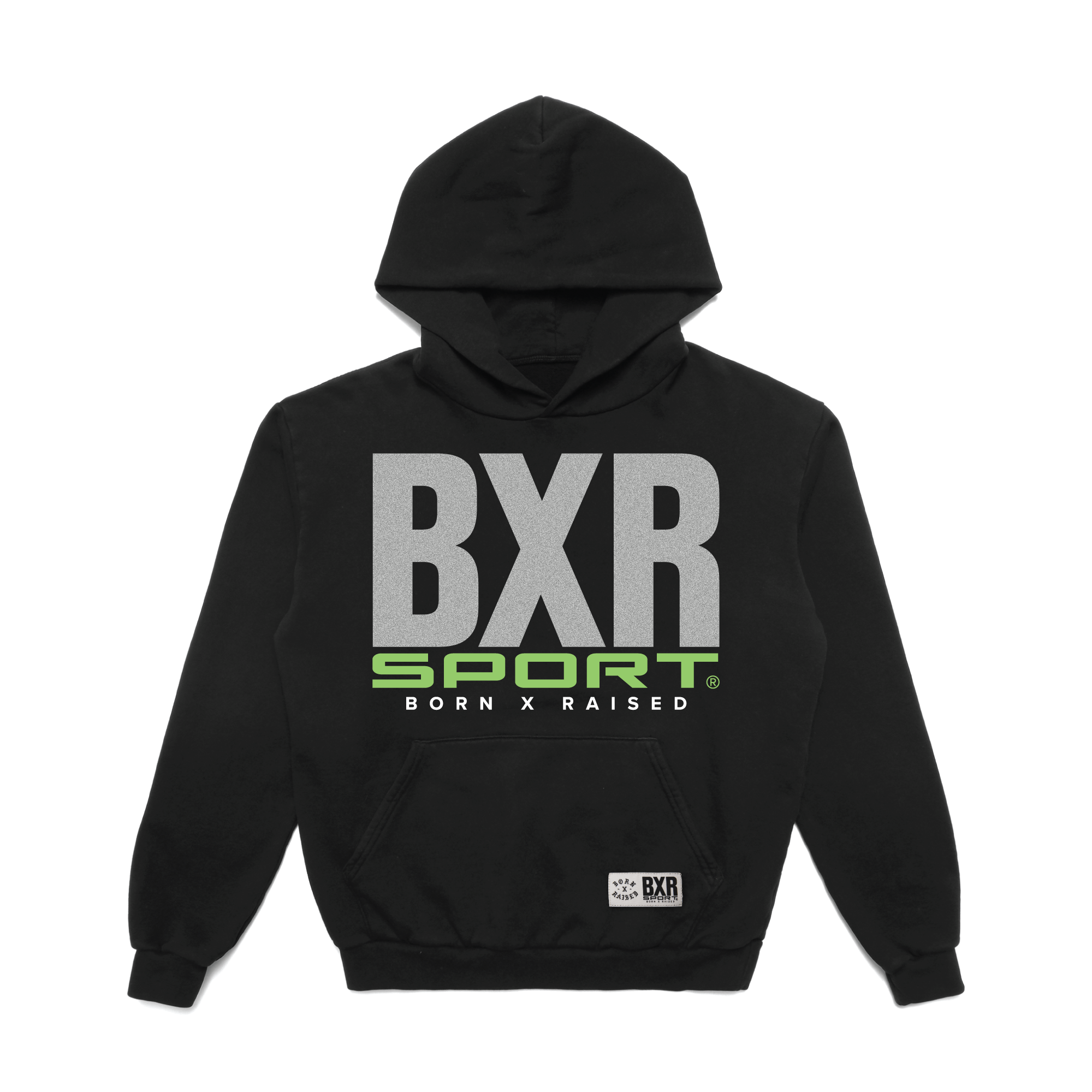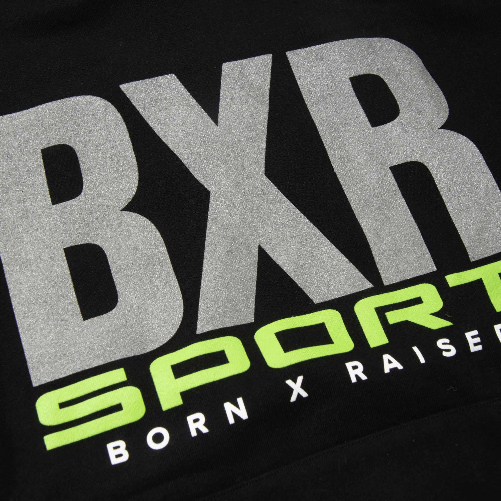 75% COTTON 25% POLYESTER 420 GSM FLEECE HOODED SWEATSHIRT. SCREENPRINTED ARTWORK ON CENTER CHEST. 3M REFLECTIVE DETAIL. WOVEN BXR SPORT LABEL ON BOTTOM LEFT.