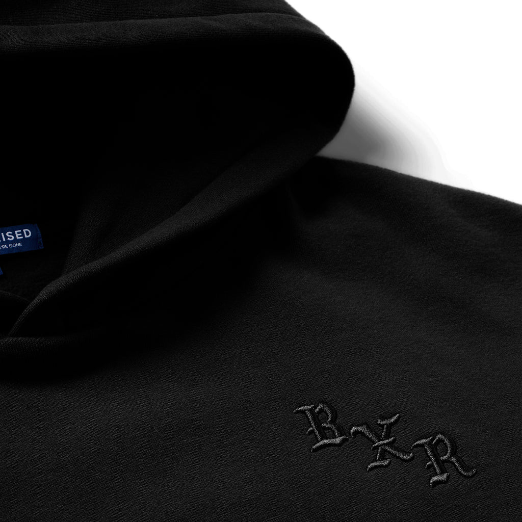 100% COTTON HOODED SWEATSHIRT. TONAL EMBROIDERED ARTWORK ON LEFT CHEST AND HOOD.