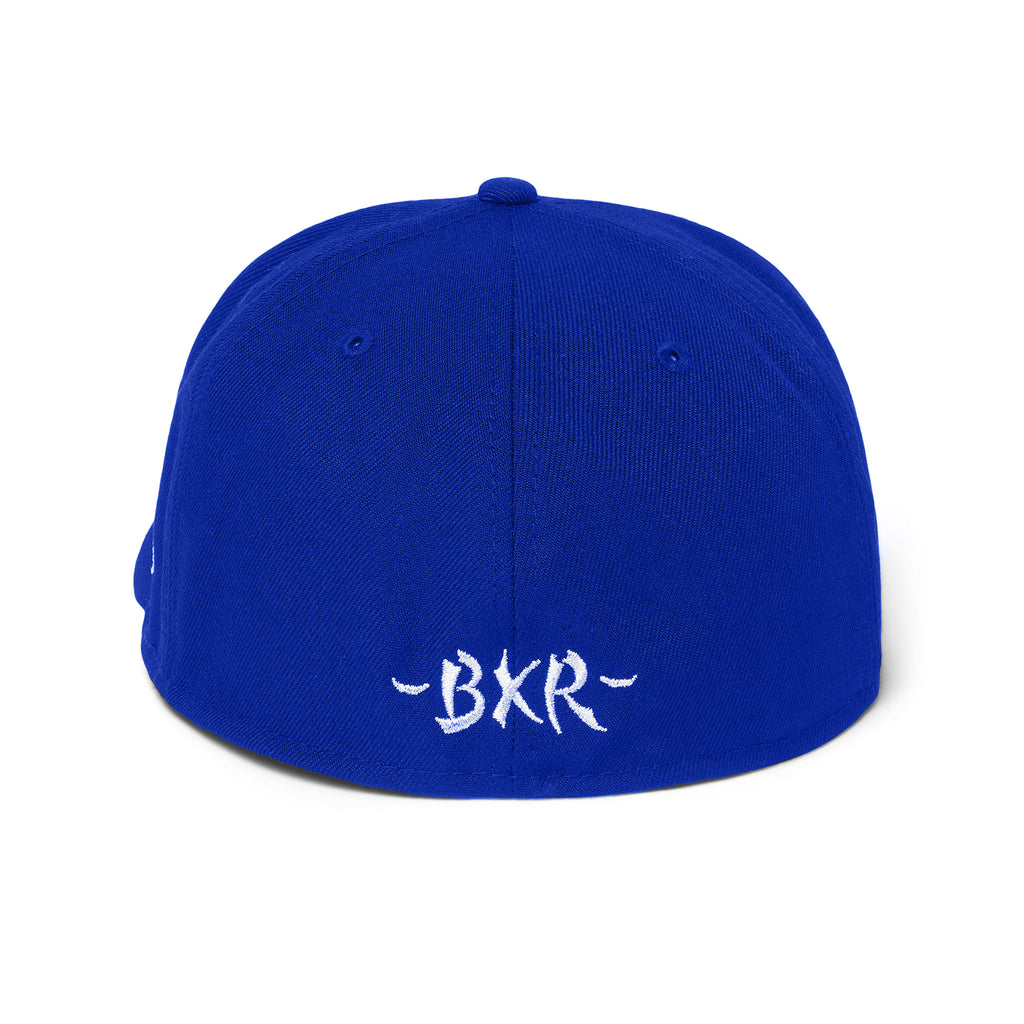 NEW ERA 59FIFTY FITTED HAT. EMBROIDERED ARTWORK ON FRONT AND BACK. GREY UV.