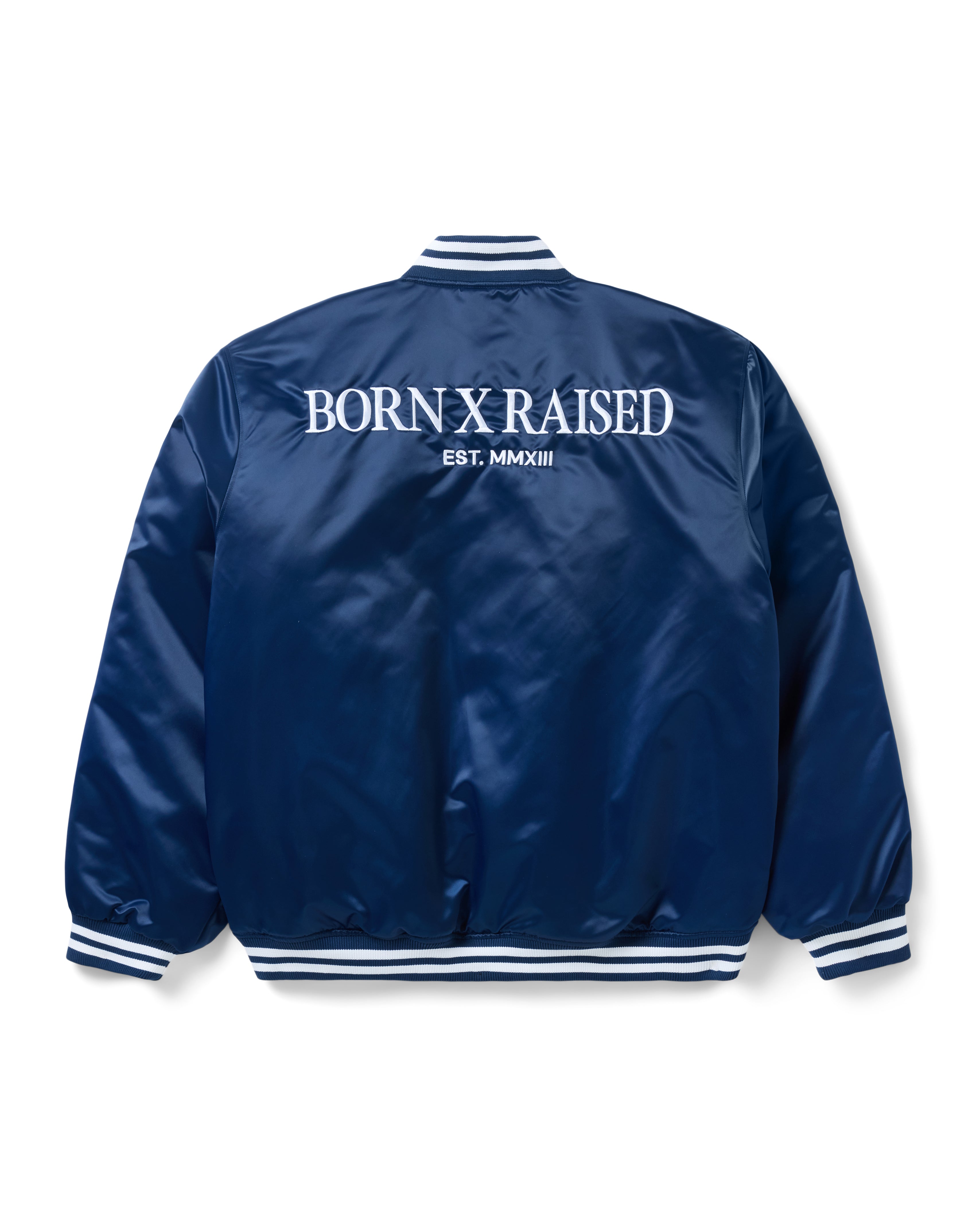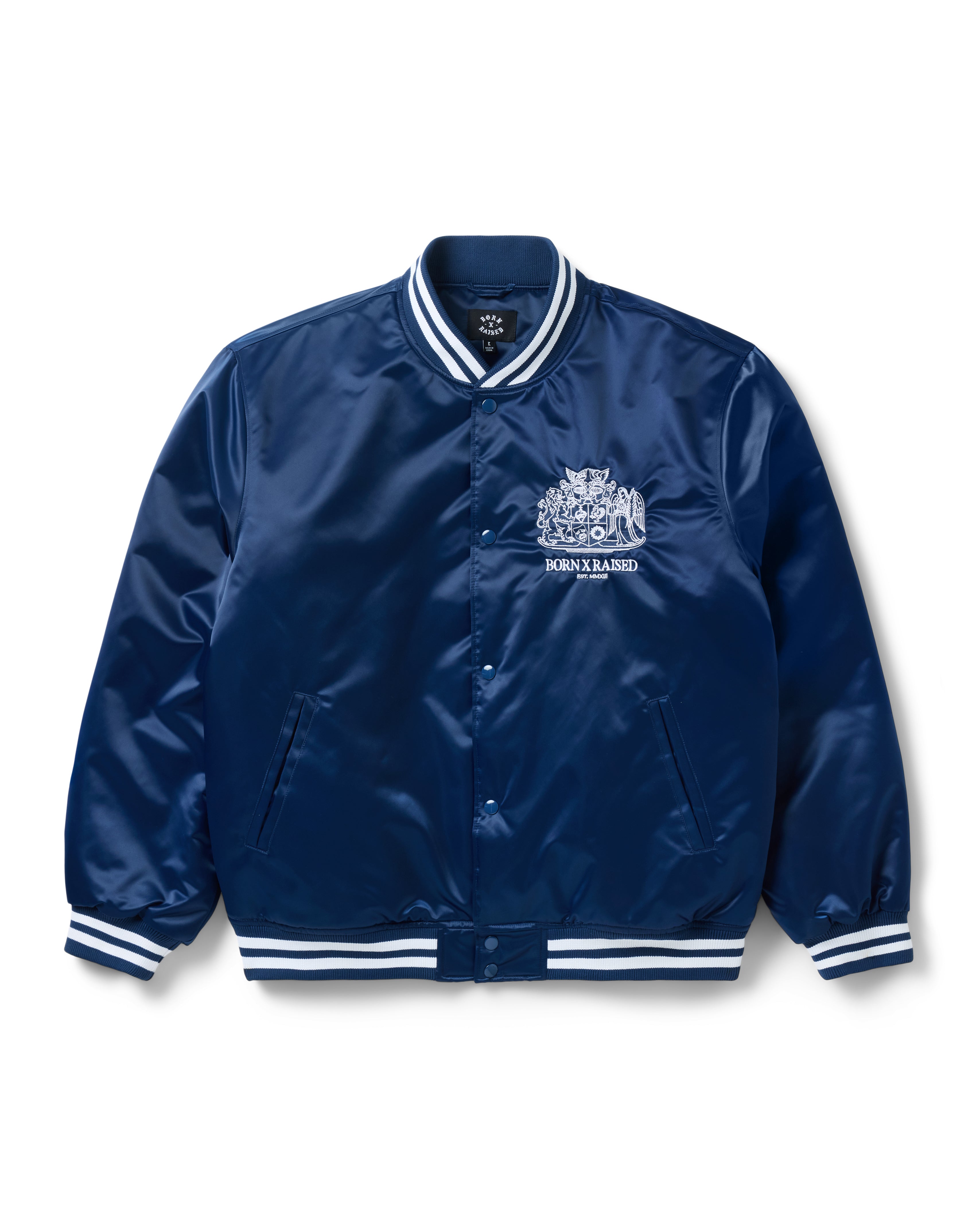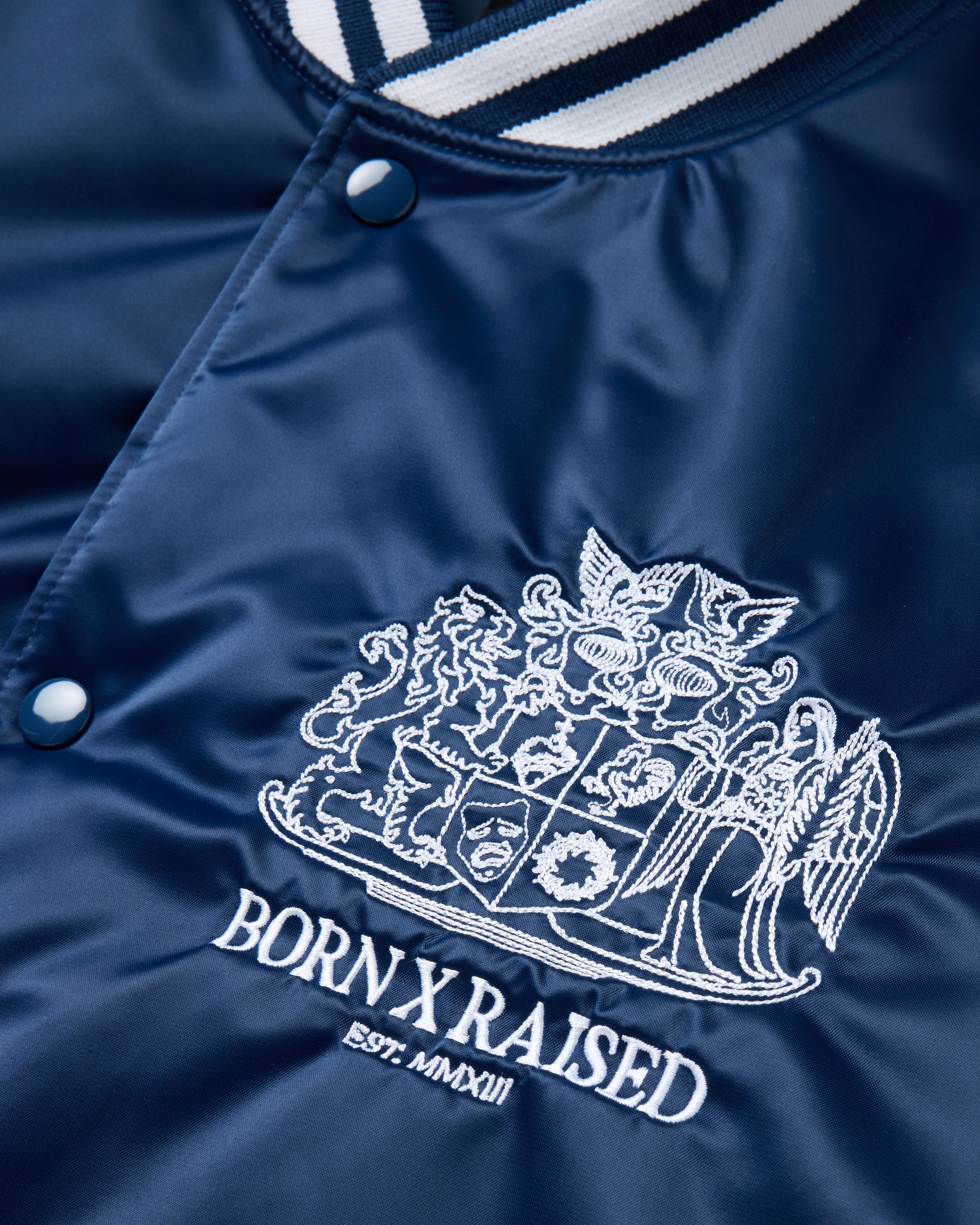 CREST SATIN STADIUM JACKET: NAVY