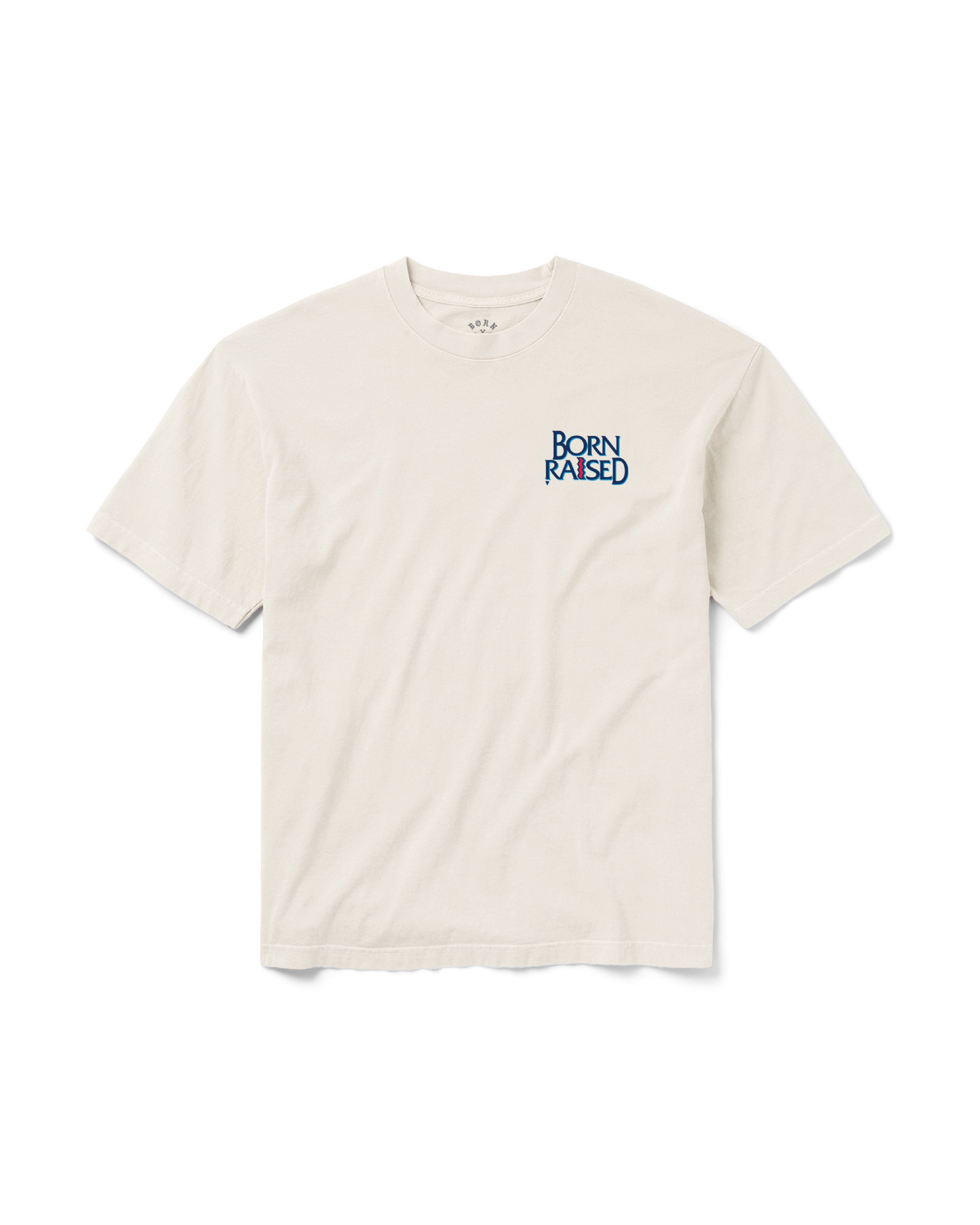 100% COTTON 6.5 OZ 3-END TEE. RELAXED, SLIGHTLY BOXY FIT. SCREENPRINTED ARTWORK ON LEFT CHEST AND BACK.