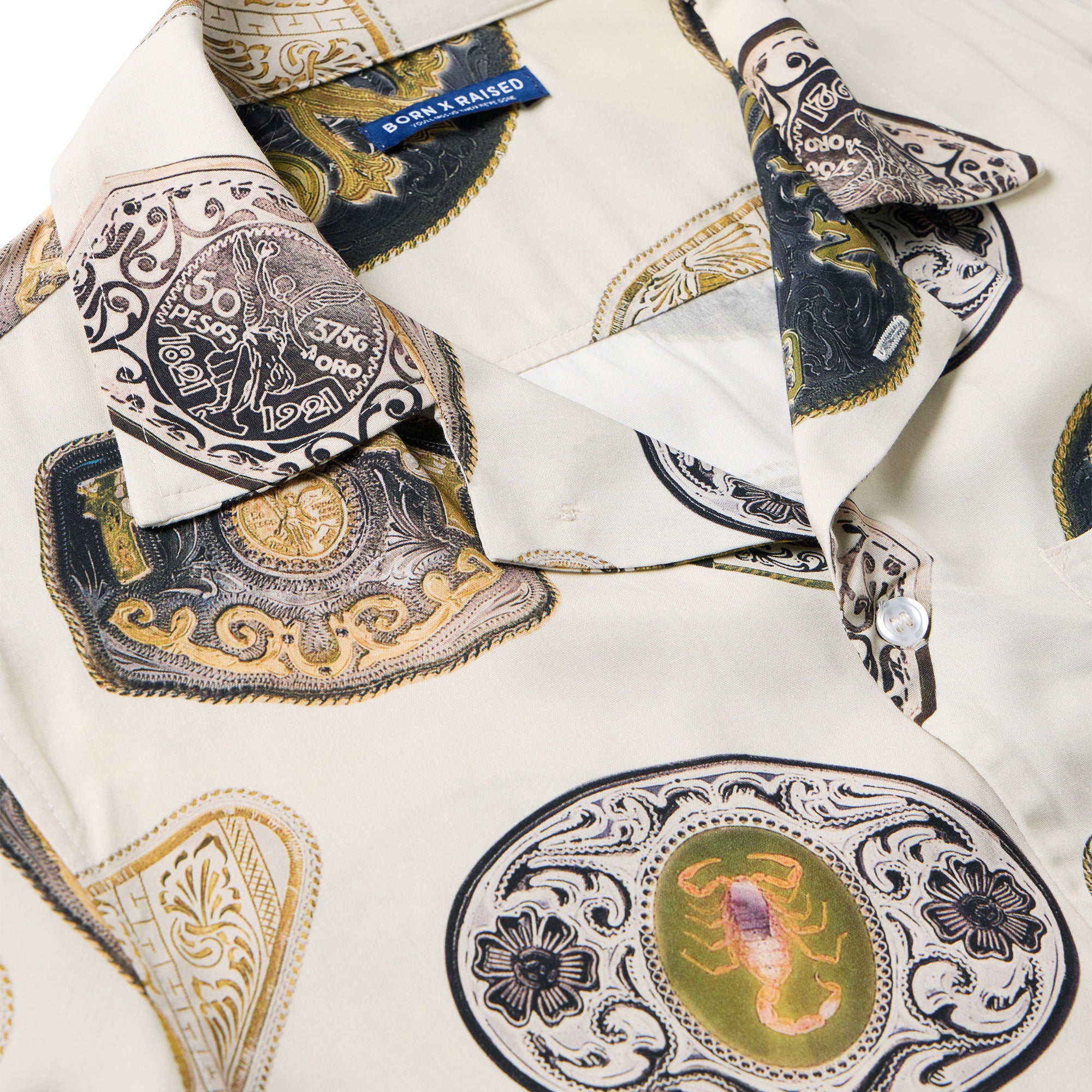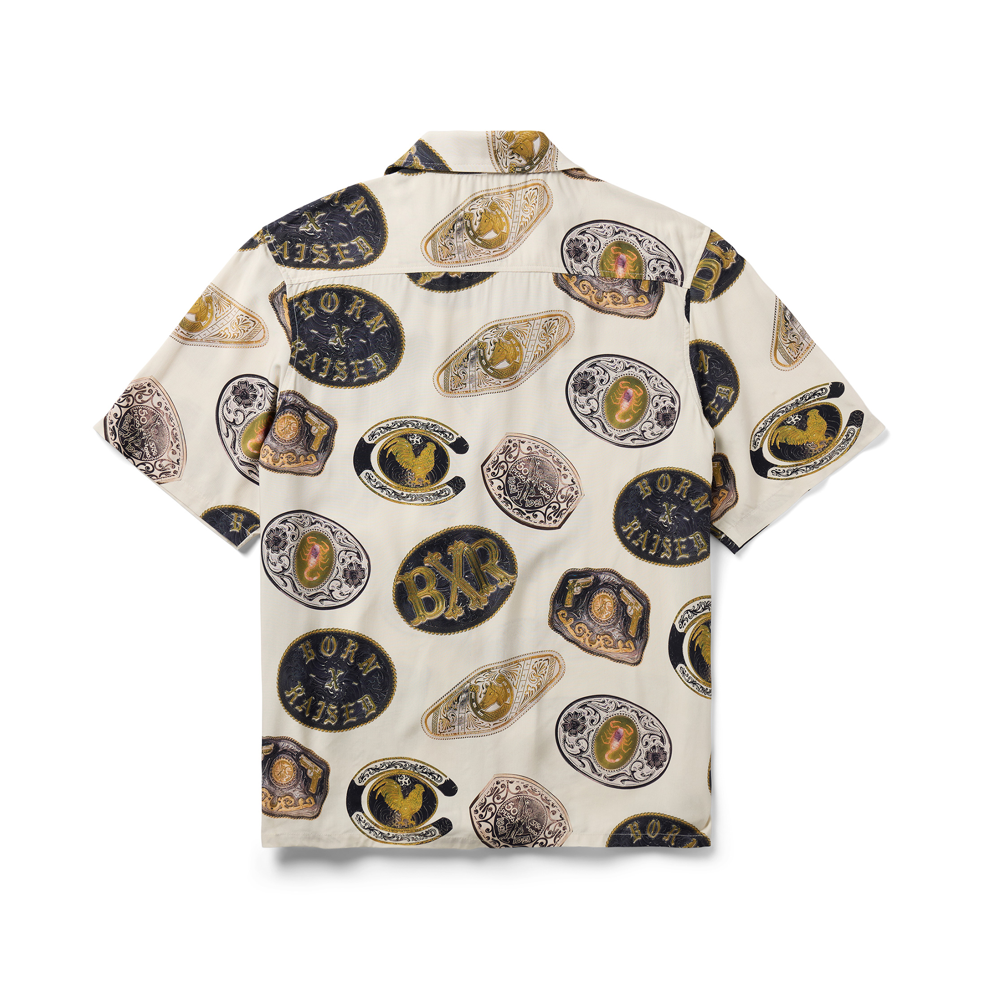 100% RAYON SHORT SLEEVE BUTTON UP SHIRT. CUT AND SEWN IN LOS ANGELES.