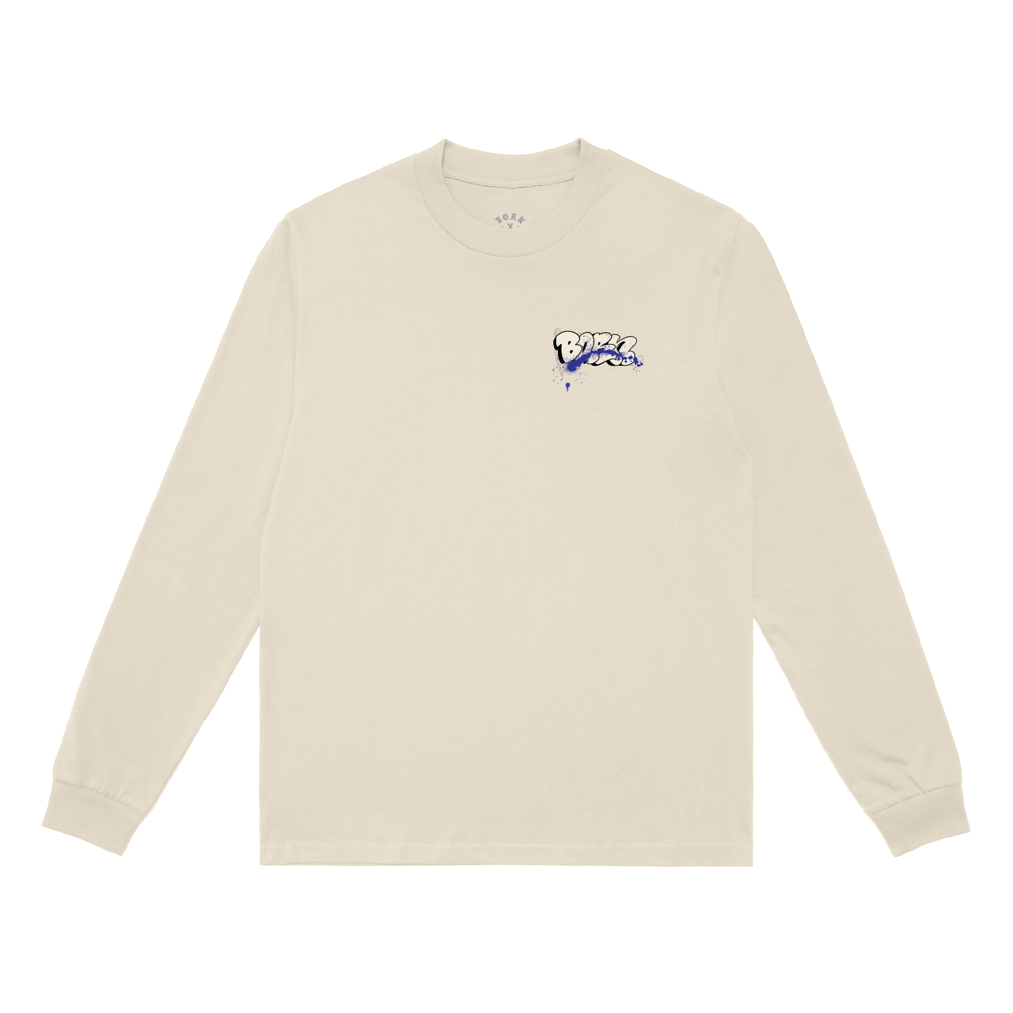 100% COTTON LONGSLEEVE TEE WITH SCREENPRINTED ARTWORK ON LEFT CHEST AND BACK.