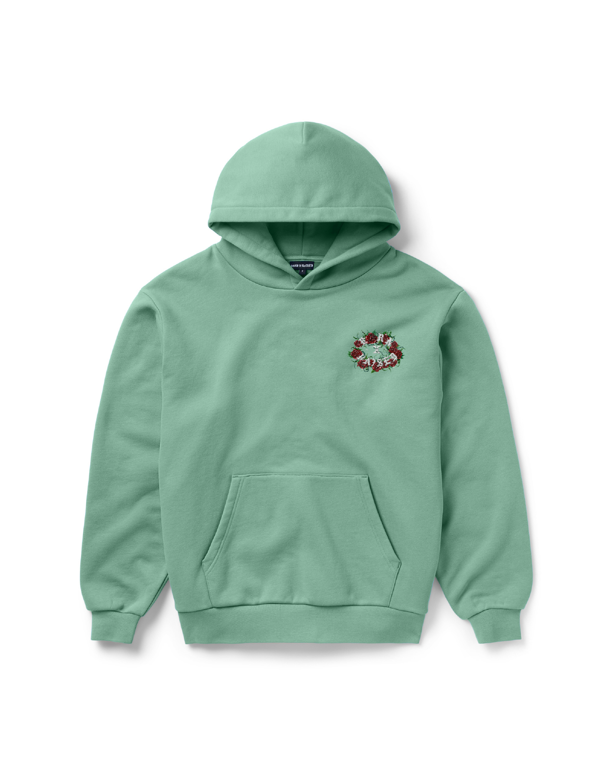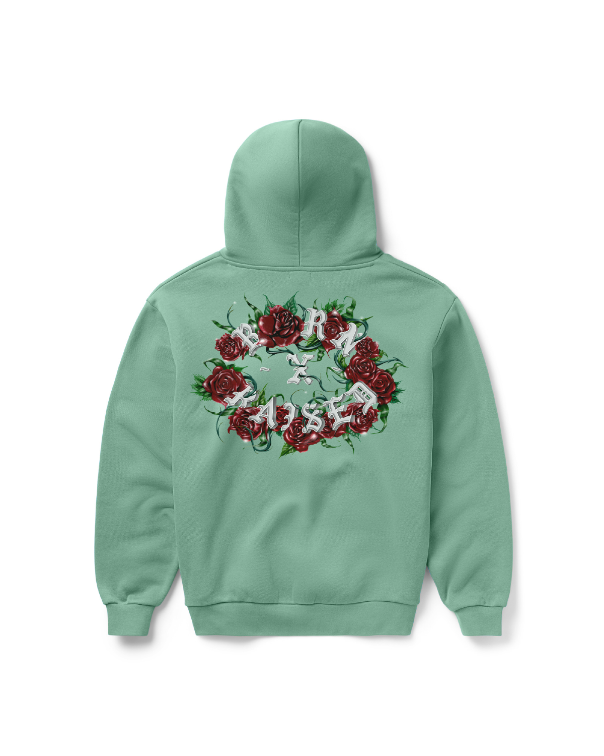 DESCRIPTION 100% 420 GSM COTTON FLEECE HOODED SWEATSHIRT. SCREENPRINTED ARTWORK ON LEFT CHEST AND BACK.