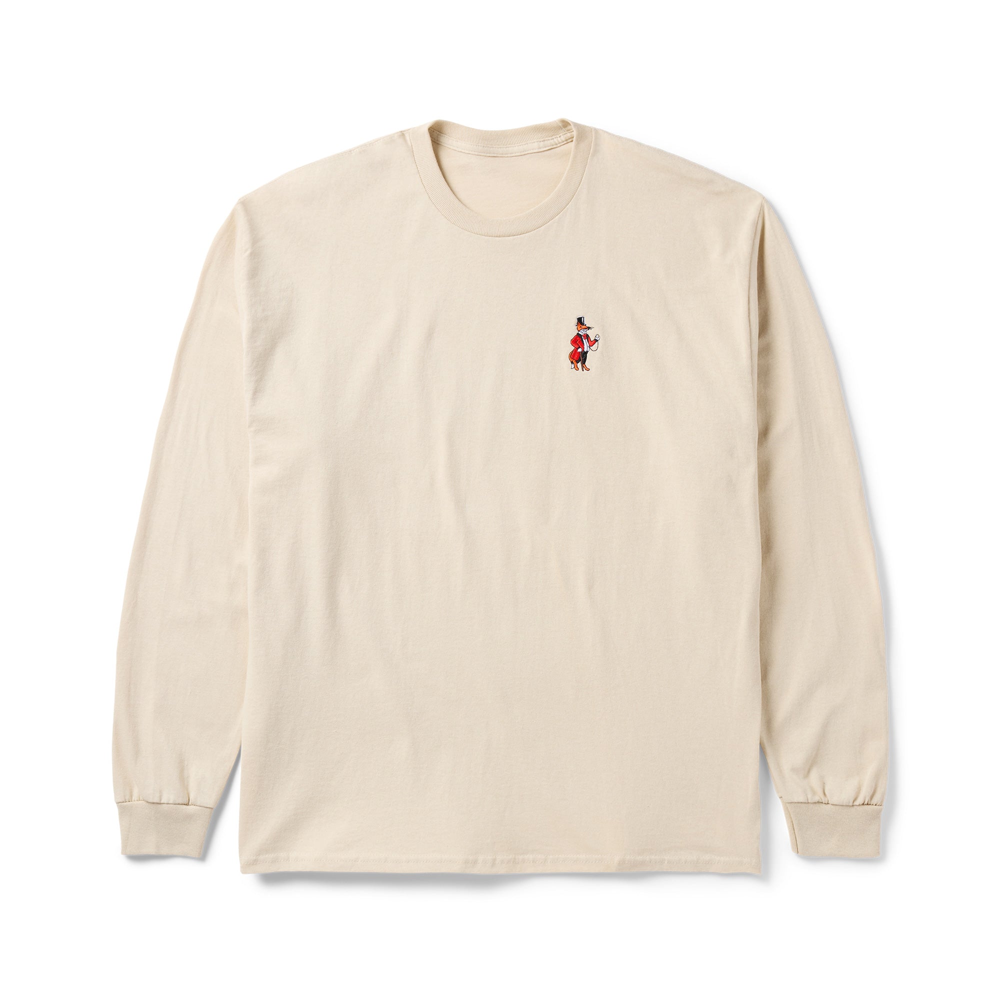 100% COTTON L/S WITH EMBROIDERED ART ON LEFT CHEST.