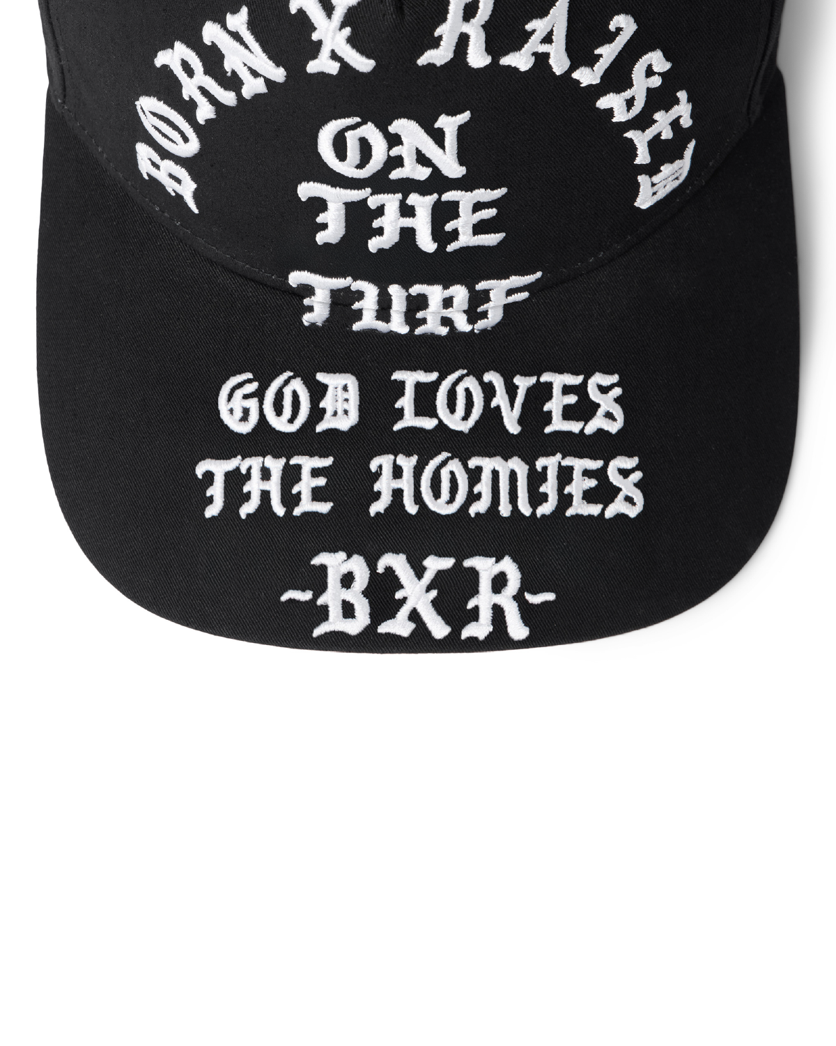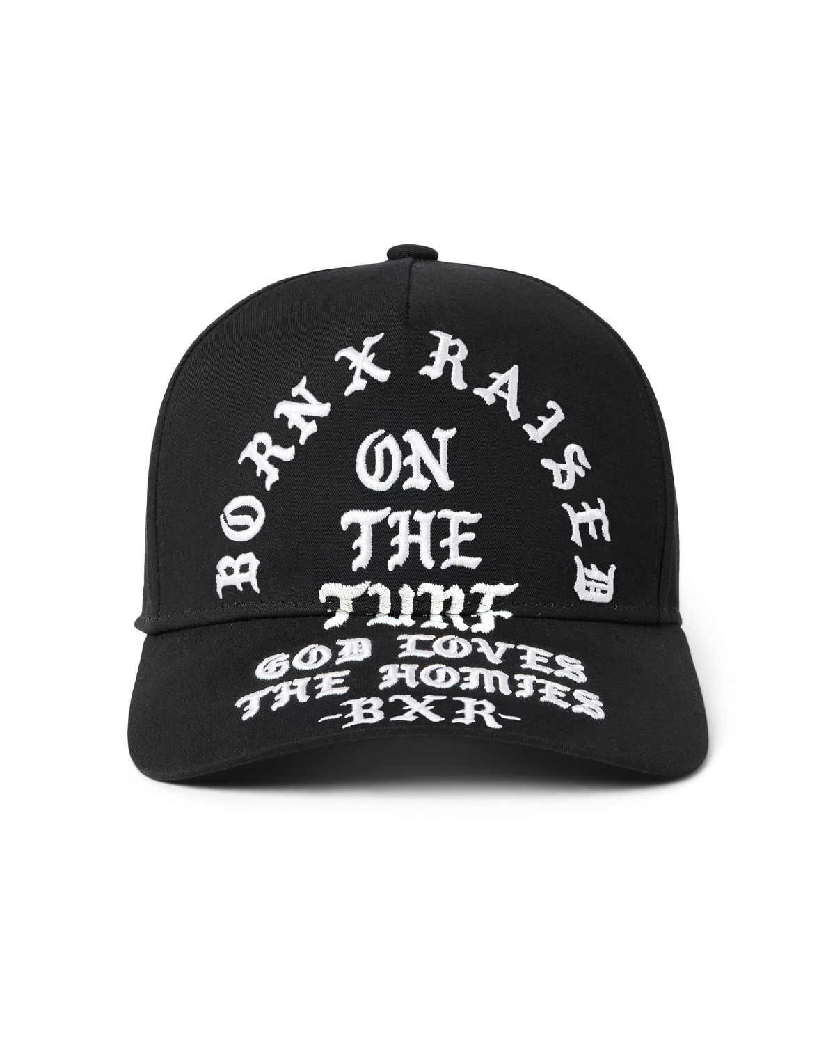 5 PANEL CAP WITH ADJUSTABLE SNAP CLOSURE. EMBROIDERED ARTWORK ON FRONT AND ONTO BRIM/UV.